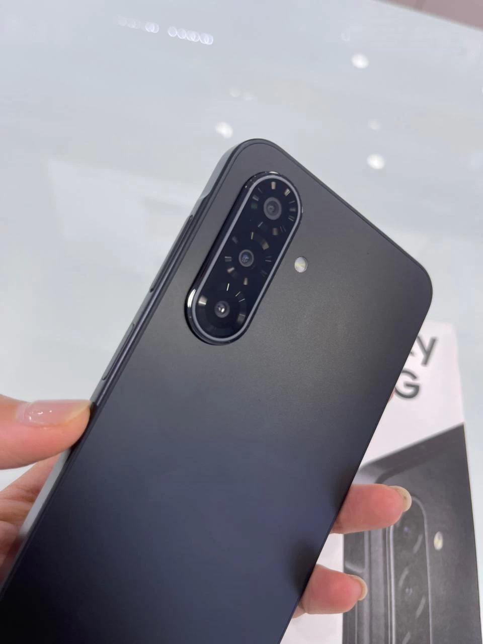 Mặt trước của thiết bị nổi bật với màn hình giọt nước, viền mỏng hai bên và trên, chỉ hơi dày ở phần dưới. Kiểu thiết kế này giúp tối ưu không gian hiển thị, mang đến trải nghiệm hình ảnh rộng rãi và sắc nét, đặc biệt khi xem phim, chơi game hoặc lướt web. Dù không sử dụng màn hình đục lỗ như các dòng flagship, kiểu giọt nước vẫn được nhiều người dùng yêu thích nhờ sự đơn giản và quen thuộc.