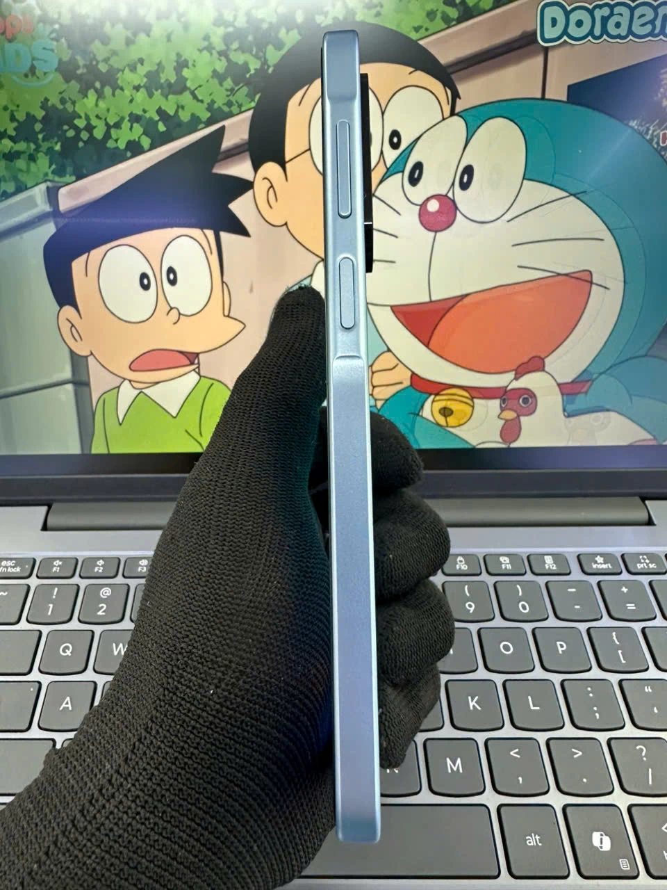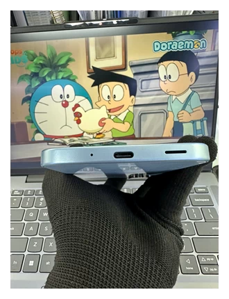 Mặt trước của thiết bị nổi bật với màn hình giọt nước, viền mỏng hai bên và trên, chỉ hơi dày ở phần dưới. Kiểu thiết kế này giúp tối ưu không gian hiển thị, mang đến trải nghiệm hình ảnh rộng rãi và sắc nét, đặc biệt khi xem phim, chơi game hoặc lướt web. Dù không sử dụng màn hình đục lỗ như các dòng flagship, kiểu giọt nước vẫn được nhiều người dùng yêu thích nhờ sự đơn giản và quen thuộc.