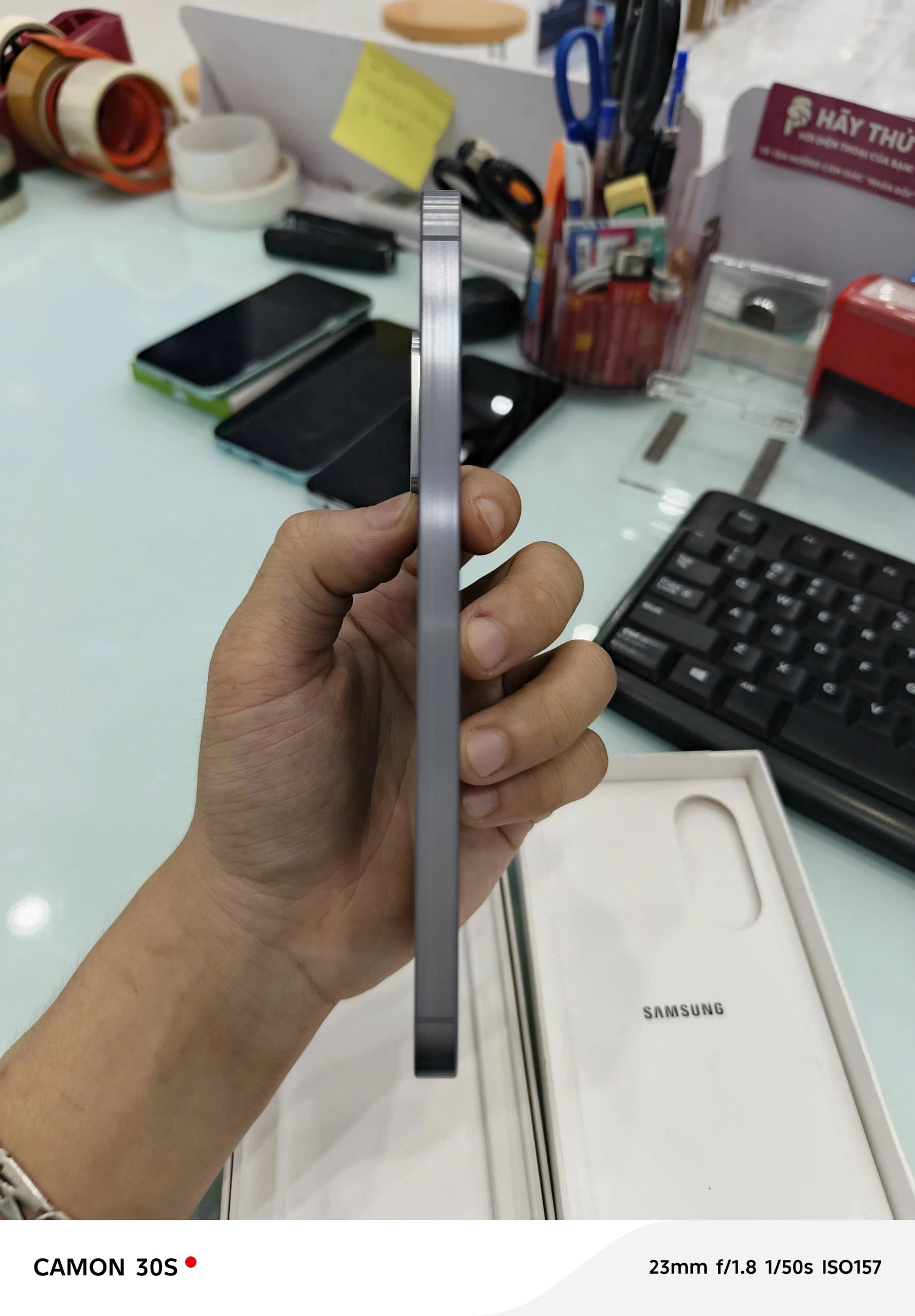 Điện thoại sở hữu mặt lưng kính Gorilla Glass Victus+, mang đến vẻ ngoài bóng bẩy và sang trọng. Khung viền kim loại chắc chắn không chỉ tăng cường độ bền mà còn tạo cảm giác cầm chắc tay. Với độ mỏng chỉ 7.4mm và trọng lượng nhẹ hơn so với người tiền nhiệm khoảng 198g, Galaxy A56 5G mang lại cảm giác thoải mái và dễ dàng sử dụng trong thời gian dài.