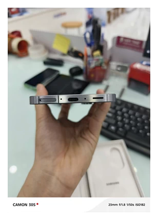 Các nút bấm vật lý như nút nguồn và nút âm lượng được bố trí hợp lý ở cạnh bên, giúp người dùng dễ dàng thao tác bằng một tay. Cổng sạc USB-C và loa ngoài được đặt ở cạnh dưới, mang đến sự thuận tiện trong quá trình sử dụng hàng ngày.