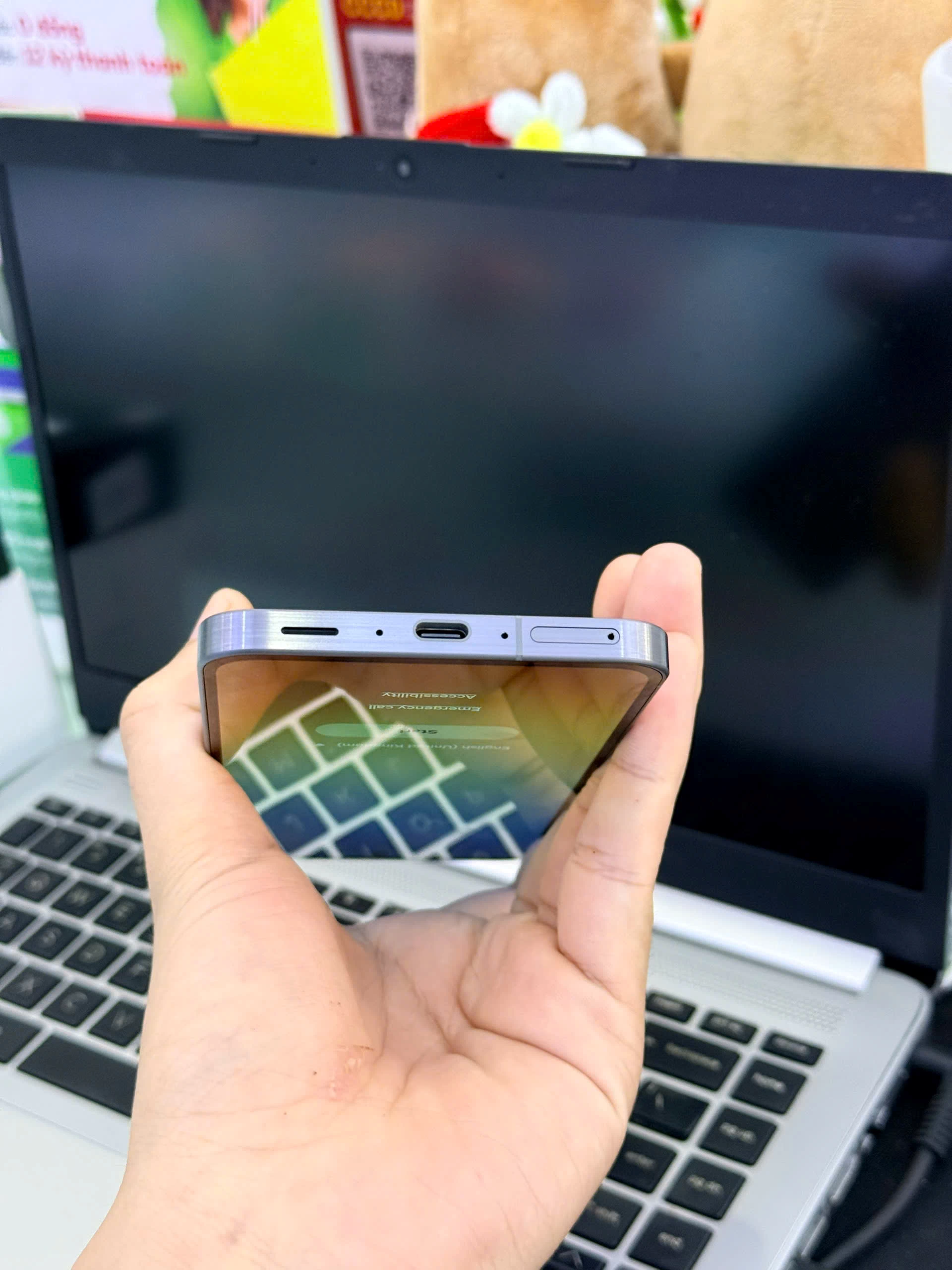 Các nút bấm vật lý như nút nguồn và nút âm lượng được bố trí hợp lý ở cạnh bên, giúp người dùng dễ dàng thao tác bằng một tay. Cổng sạc USB-C và loa ngoài được đặt ở cạnh dưới, mang đến sự thuận tiện trong quá trình sử dụng hàng ngày.