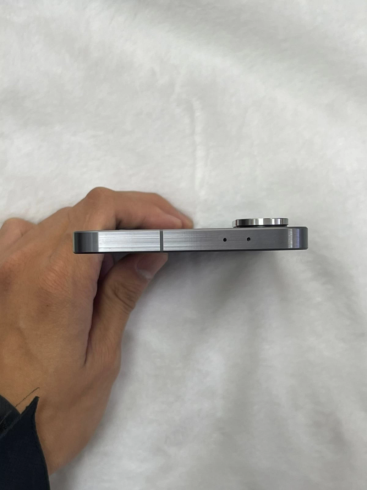Các nút bấm vật lý như nút nguồn và nút âm lượng được bố trí hợp lý ở cạnh bên, giúp người dùng dễ dàng thao tác bằng một tay. Cổng sạc USB-C và loa ngoài được đặt ở cạnh dưới, mang đến sự thuận tiện trong quá trình sử dụng hàng ngày.