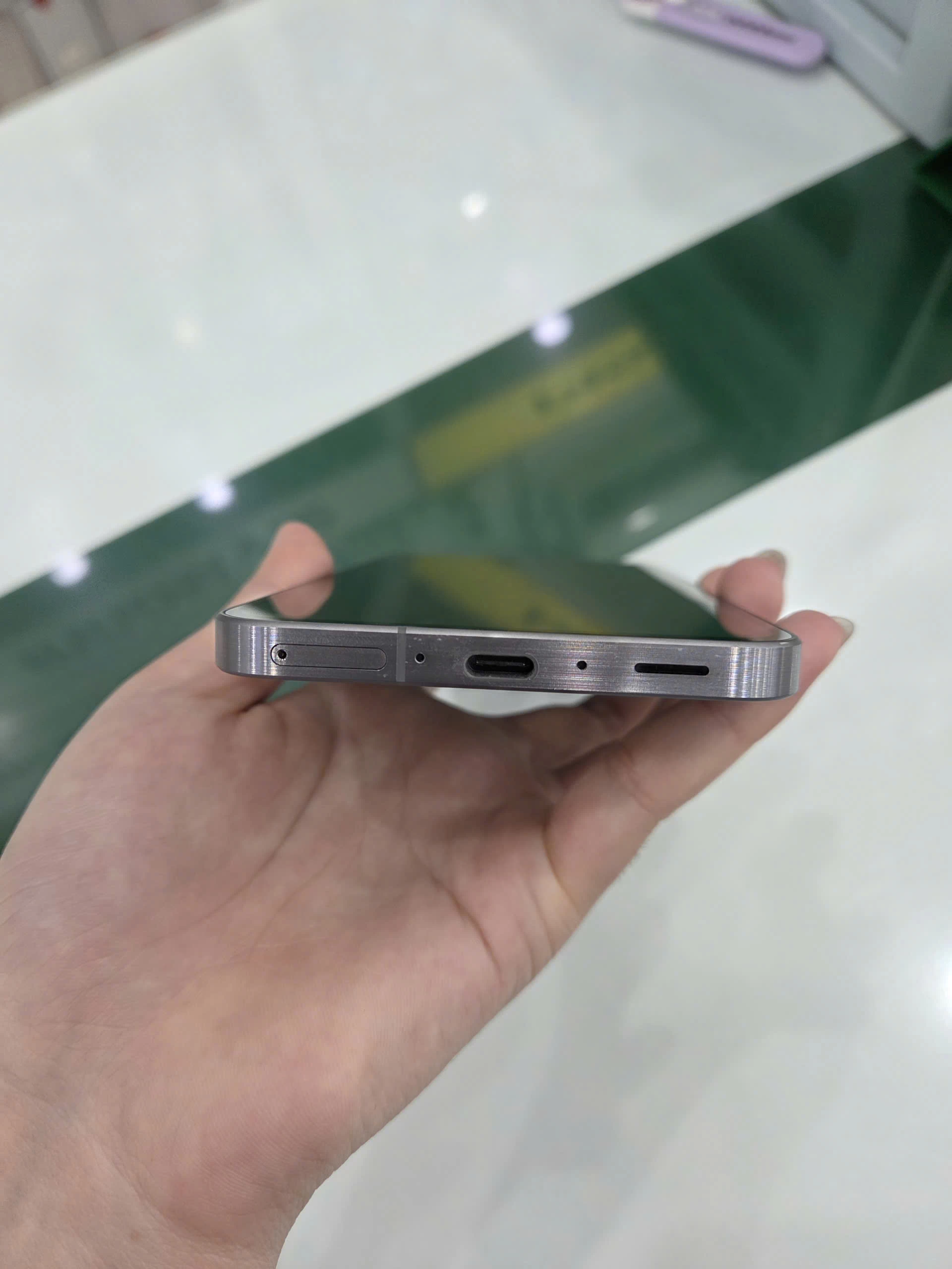 Các nút bấm vật lý như nút nguồn và nút âm lượng được bố trí hợp lý ở cạnh bên, giúp người dùng dễ dàng thao tác bằng một tay. Cổng sạc USB-C và loa ngoài được đặt ở cạnh dưới, mang đến sự thuận tiện trong quá trình sử dụng hàng ngày.