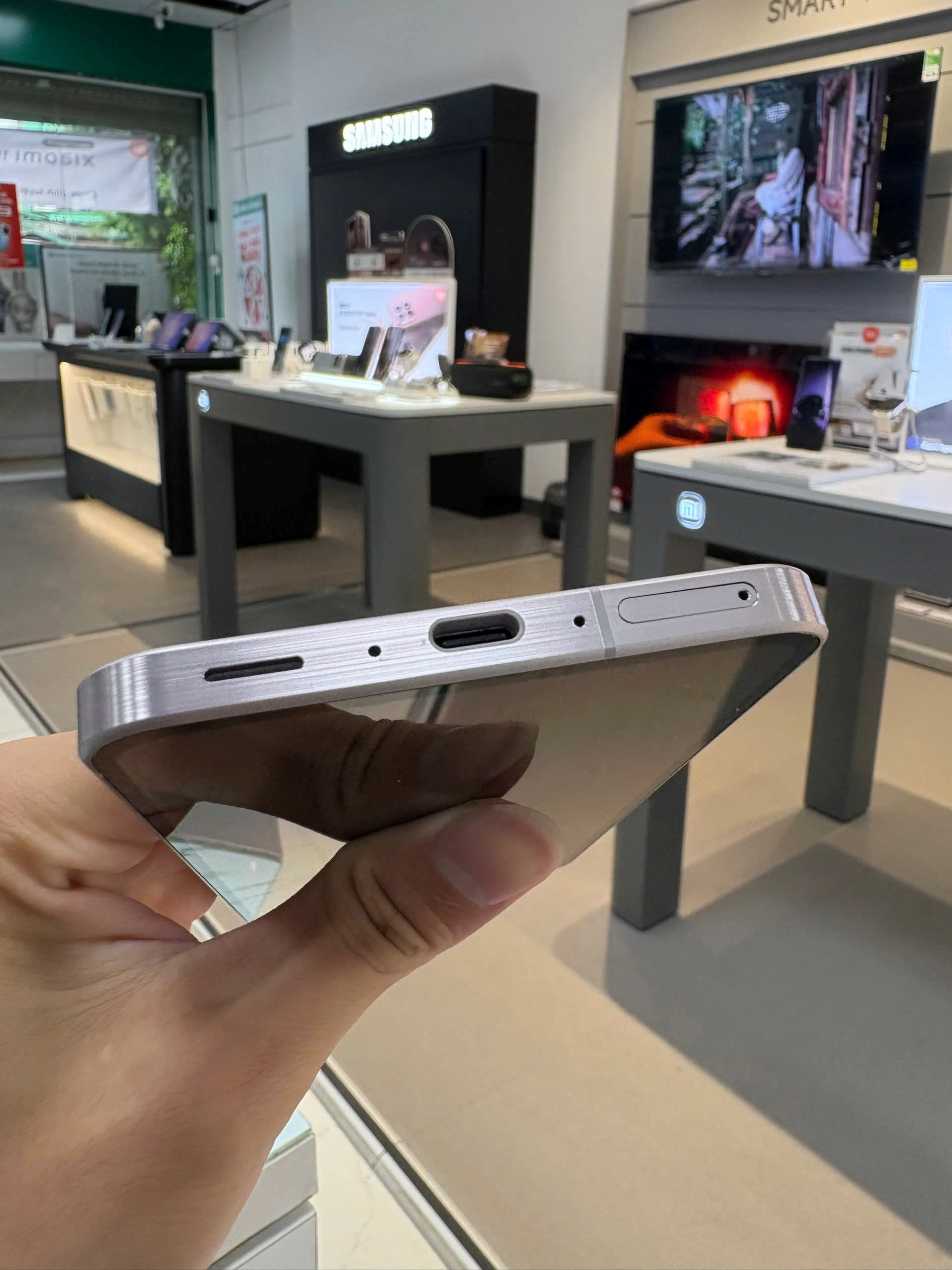 Các nút bấm vật lý như nút nguồn và nút âm lượng được bố trí hợp lý ở cạnh bên, giúp người dùng dễ dàng thao tác bằng một tay. Cổng sạc USB-C và loa ngoài được đặt ở cạnh dưới, mang đến sự thuận tiện trong quá trình sử dụng hàng ngày.