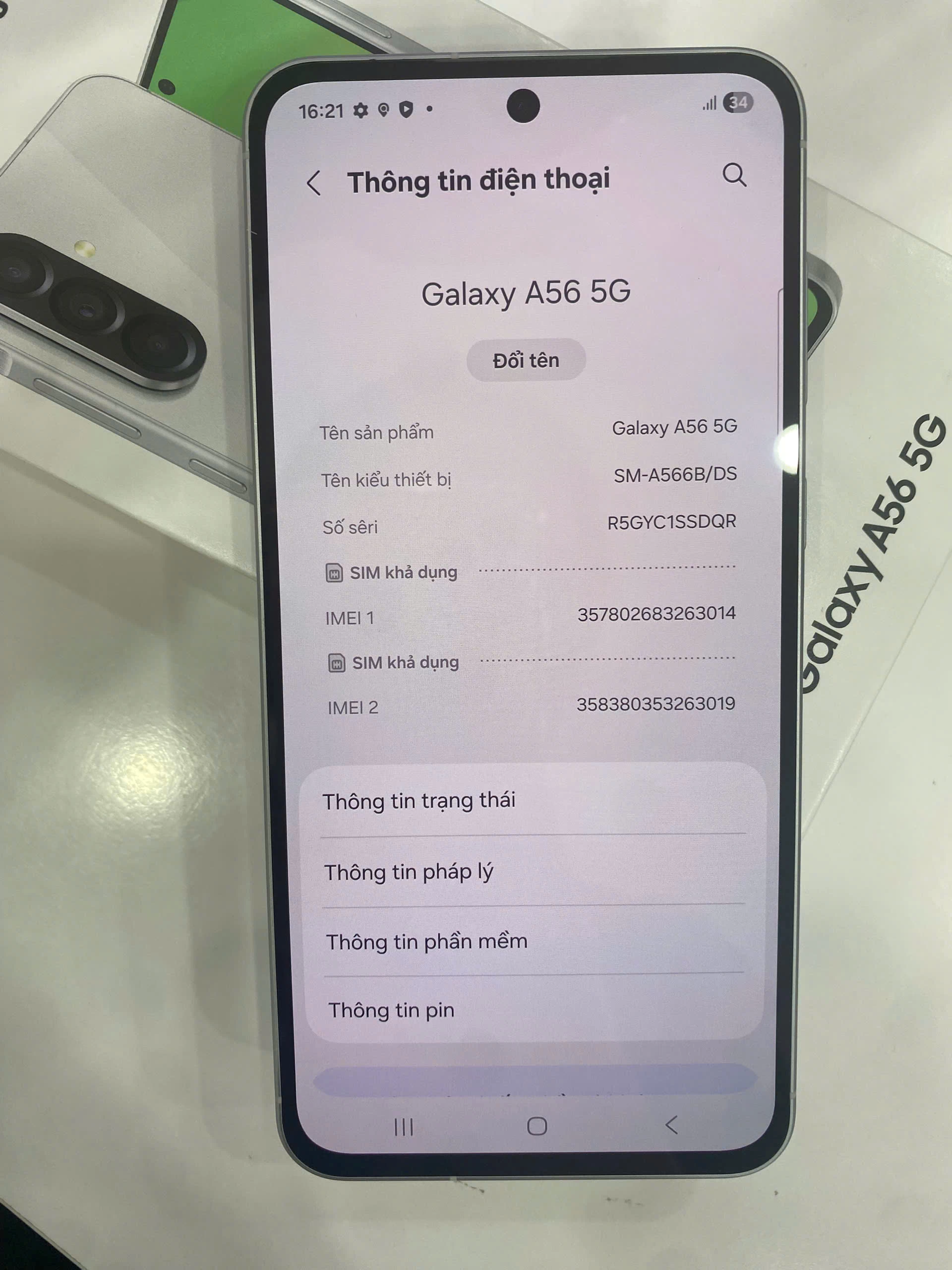 Điện thoại sở hữu mặt lưng kính Gorilla Glass Victus+, mang đến vẻ ngoài bóng bẩy và sang trọng. Khung viền kim loại chắc chắn không chỉ tăng cường độ bền mà còn tạo cảm giác cầm chắc tay. Với độ mỏng chỉ 7.4mm và trọng lượng nhẹ hơn so với người tiền nhiệm khoảng 198g, Galaxy A56 5G mang lại cảm giác thoải mái và dễ dàng sử dụng trong thời gian dài.