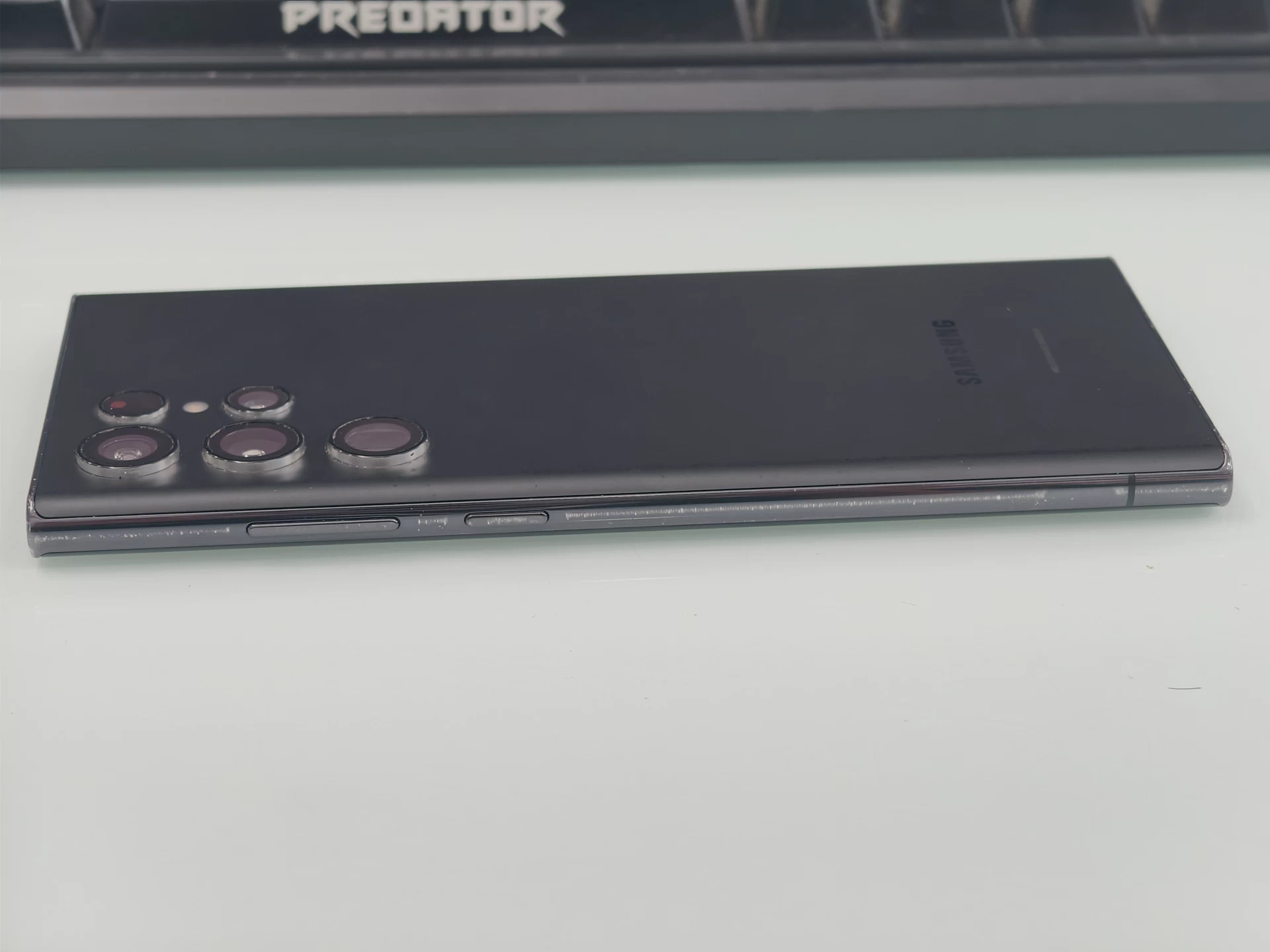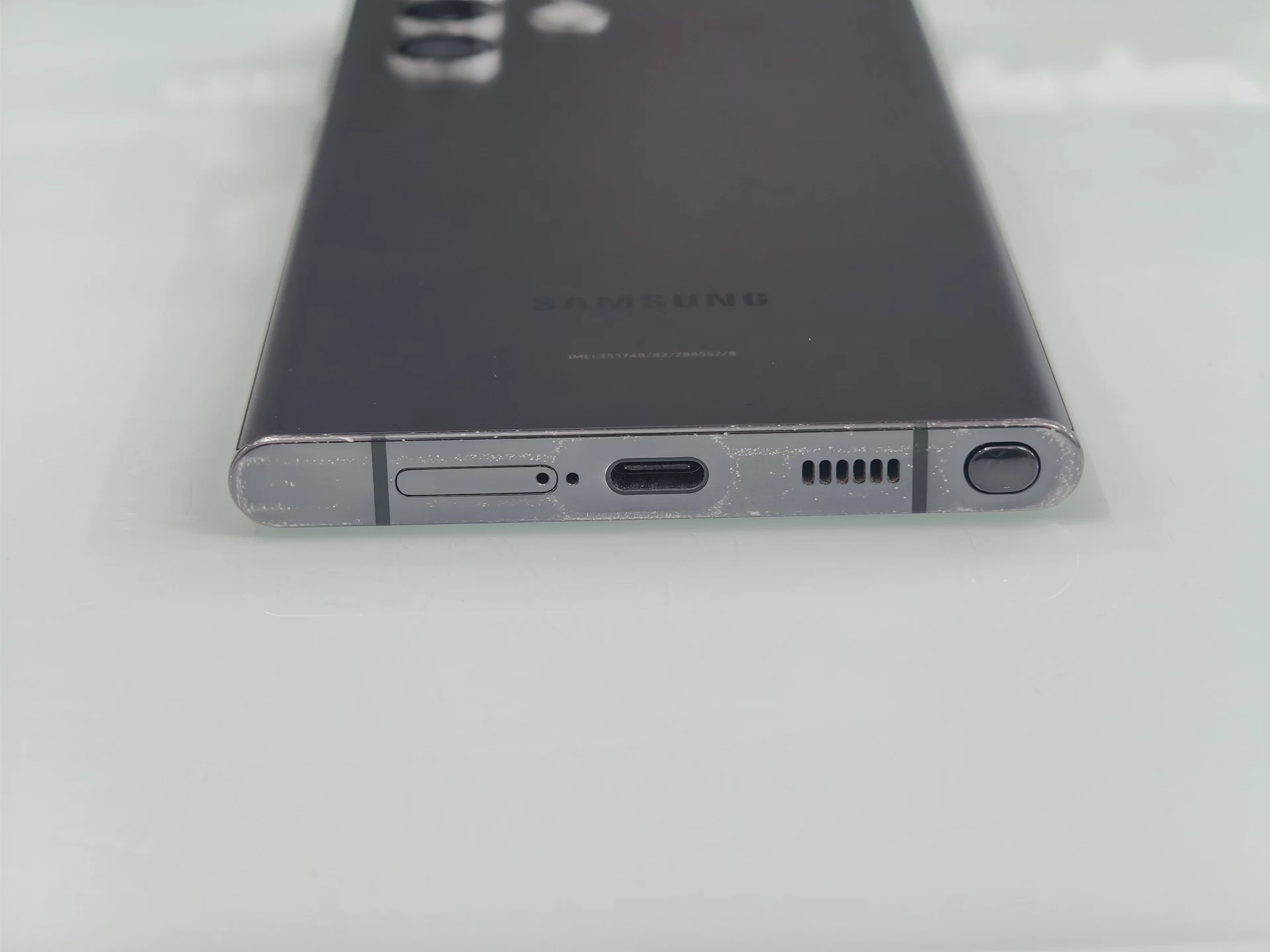 Cảm giác cầm trên S22 Ultra đều cực kỳ thoải mái và dễ chịu, chắc tay. Các phần tiếp xúc giữa 2 vật liệu là nhôm gia cường và kính ở mặt lưng, màn hình đều rất chỉn chu. Vị trí giữa phần viền hông và phần cạnh đáy cũng được gia công đủ khéo để khi dùng máy 1 tay, tì vào lòng bàn tay không có cảm giác khó chịu. Giống như những đời siêu phẩm trước, Galaxy S22 Ultra cũng có khả năng kháng nước và bụi bẩn IP68.