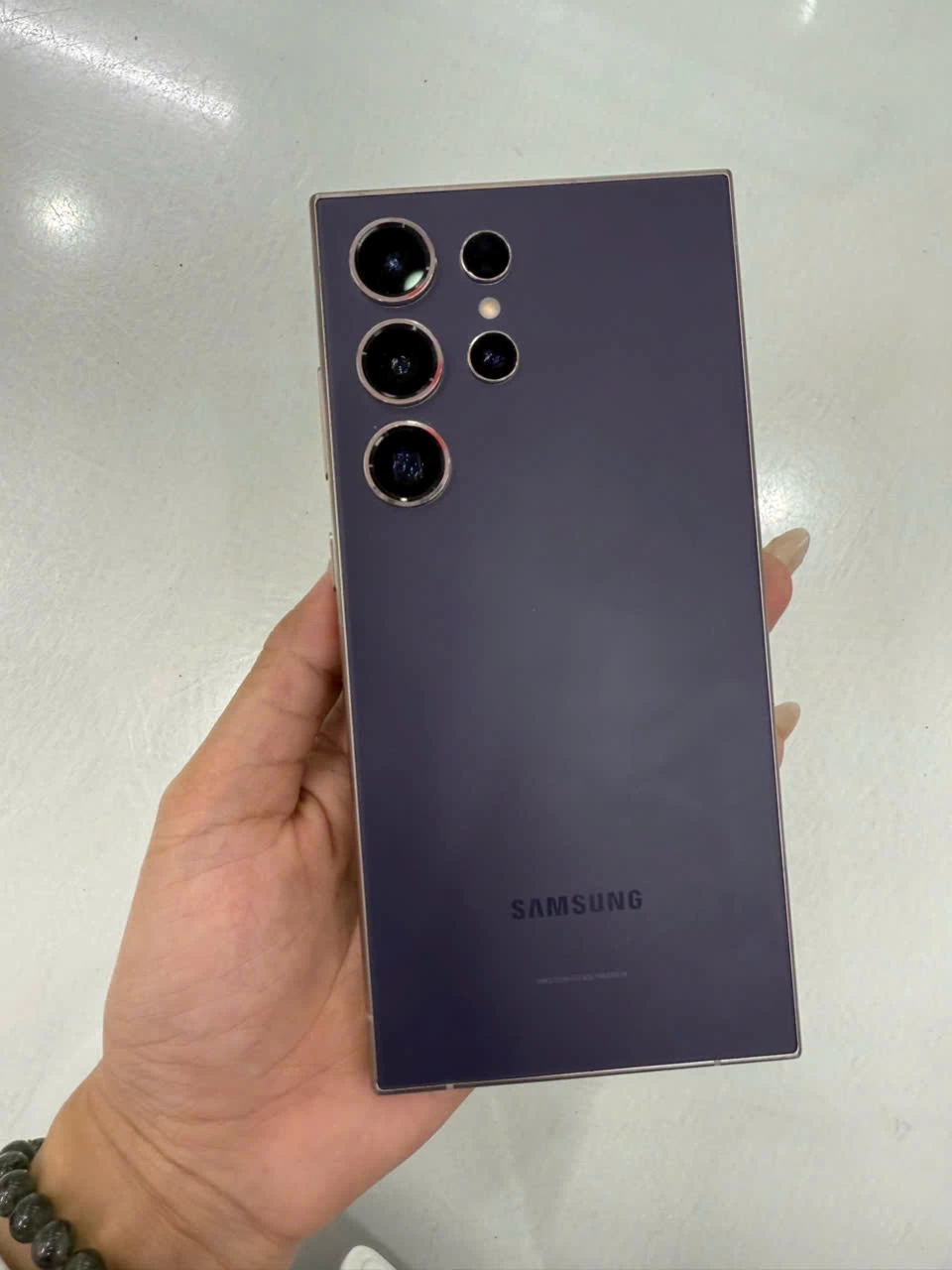 Chiếc S24 Ultra sở hữu thiết kế sang trọng và tinh tế trong từng chi tiết, đánh dấu sự đổi mới đáng kể so với các thế hệ trước. Điểm nổi bật đầu tiên là việc sử dụng khung viền được làm từ Titanium - một vật liệu nổi tiếng về độ bền và nhẹ. Nhờ đó, máy không chỉ mang lại cảm giác chắc chắn khi cầm nắm mà còn góp phần vào vẻ đẹp sang trọng của thiết bị.