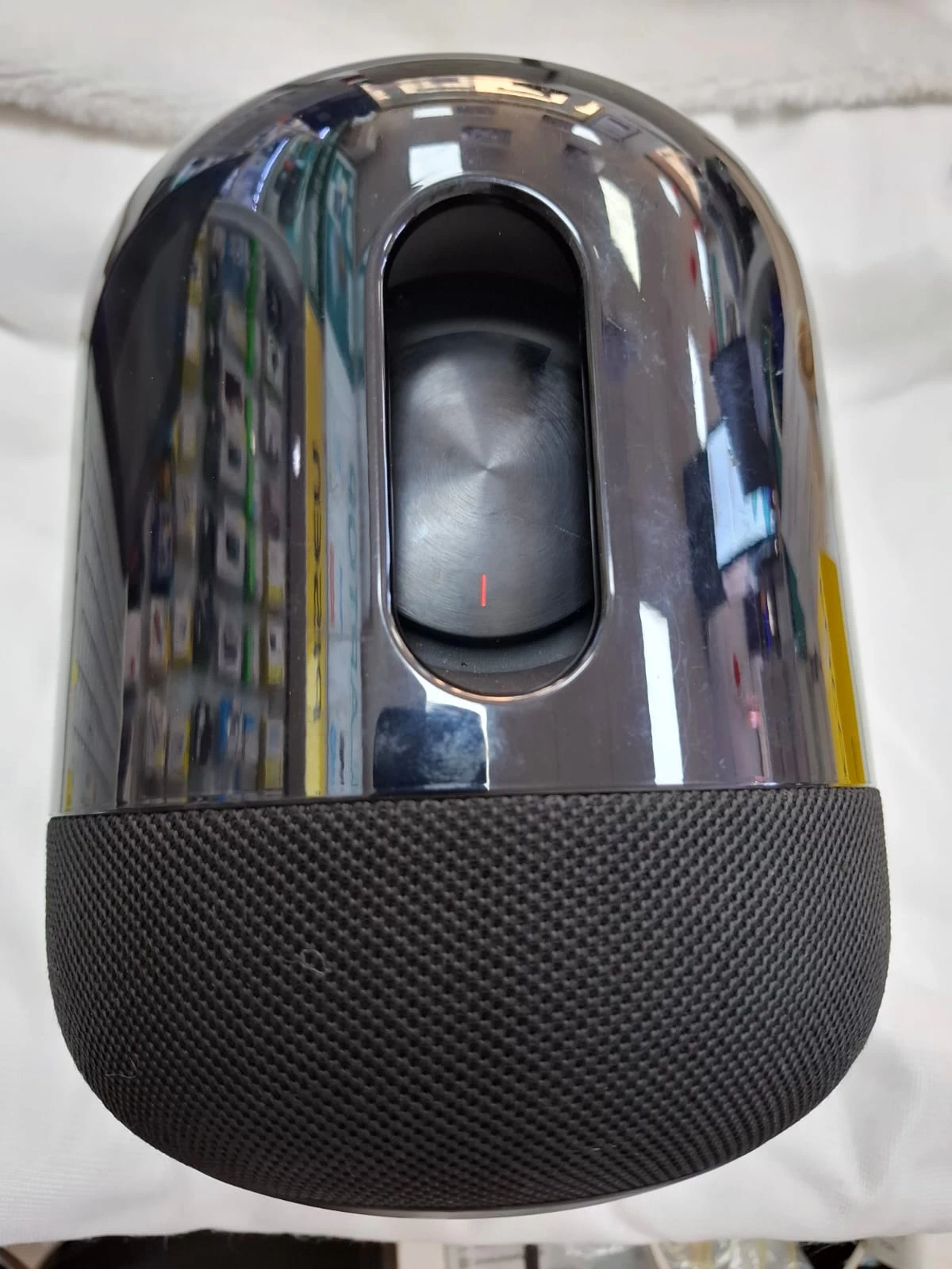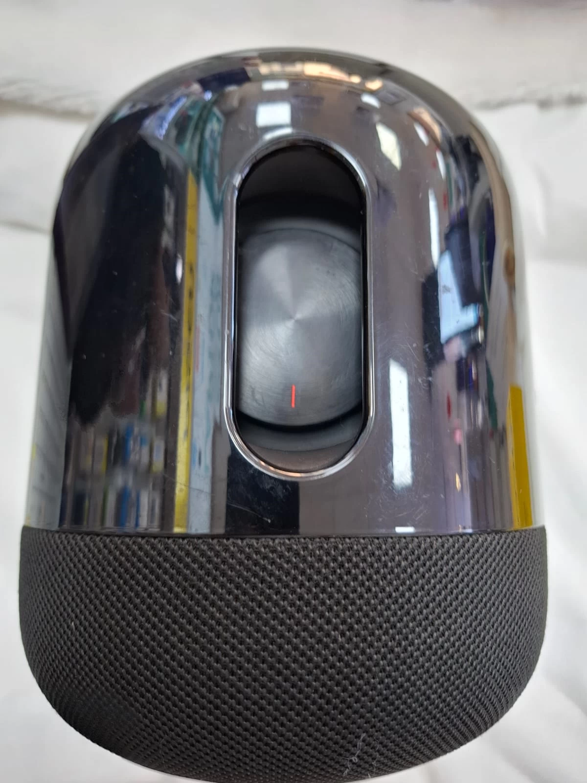 Mặt trên của loa Huawei Sound X chính hãng là bảng điều khiển cảm biến điện dung. Trong đó bao gồm các nút tùy chỉnh âm lượng, tắt tiếng, tắt mic, nút đa nhiệm điều khiển playback,… Màn hình cũng có hiệu ứng ánh sáng khi loa đang hoạt động hoặc khi người dùng điều chỉnh loa qua trợ lý ảo. Bạn hoàn toàn có thể thao tác dễ dàng trên chiếc loa bluetooth này.