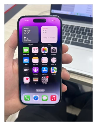 Bên cạnh đó, Apple vẫn đầu tư rất nhiều cho màn hình của các mẫu iPhone 14 Series. Đối với phiên bản iPhone 14 Pro chính hãng VN/A, màn hình có kích thước 6.1 inch với độ phân giải 2556 x 1179 pixels, được tích hợp công nghệ làm mới màn hình 120Hz cực mượt. Một số tính năng khác được tích hợp trên màn hình bao gồm HDR, Dolby Vision, True-Tone, hay thậm chí là Always-On mang đến trải nghiệm mãn nhãn cho người dùng với chất lượng hiển thị hình ảnh chi tiết, sắc nét, rực rỡ và vô cùng sống động.