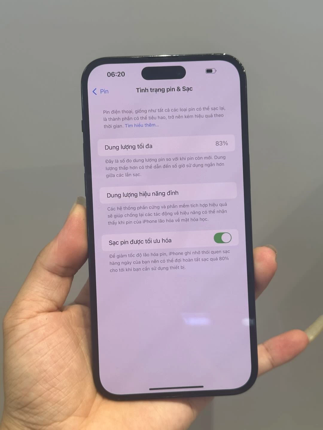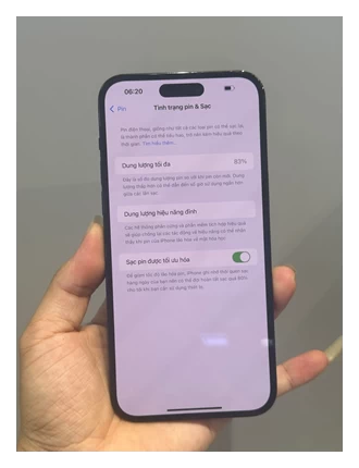 iPhone 14 Pro Max VN/A có dung lượng 4.323 mAh – thấp hơn một chút so với mức 4.352 mAh của 13 Pro Max. Ngoài ra, thiết bị được trang bị sạc nhanh với công suất 30W, cao hơn đáng kể so với mức sạc 20W cũ.