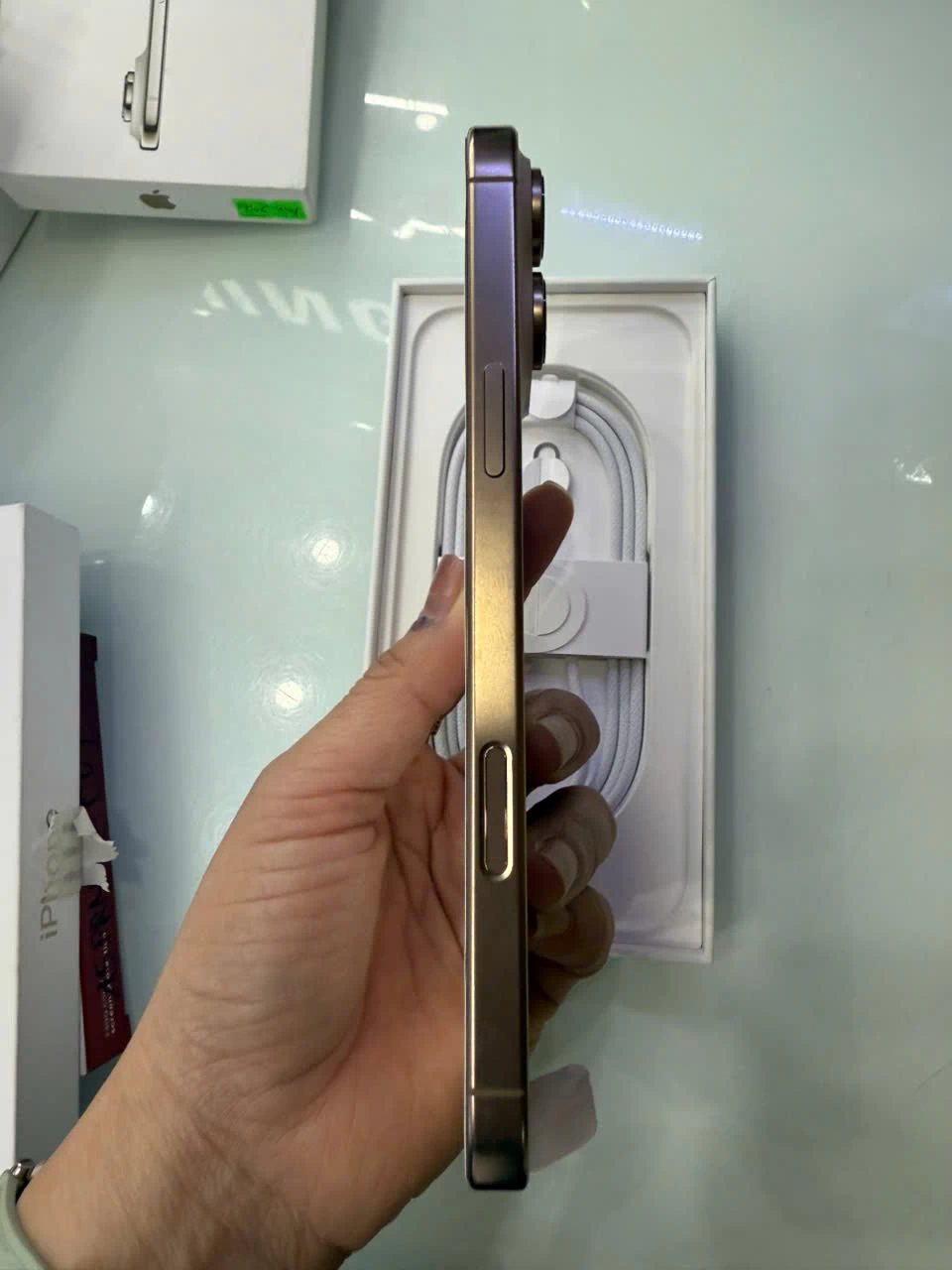 Về màu sắc, bạn có các tùy chọn Black Titanium, White Titanium và Natural Titanium giống như iPhone 15 Pro Max năm ngoái. Ngoại trừ tùy chọn Blue Titanium, giờ đây có thêm màu Desert Titanium. Đây là màu đồng trông rất sang trọng mà Apple sử dụng làm màu chủ đạo của năm nay.