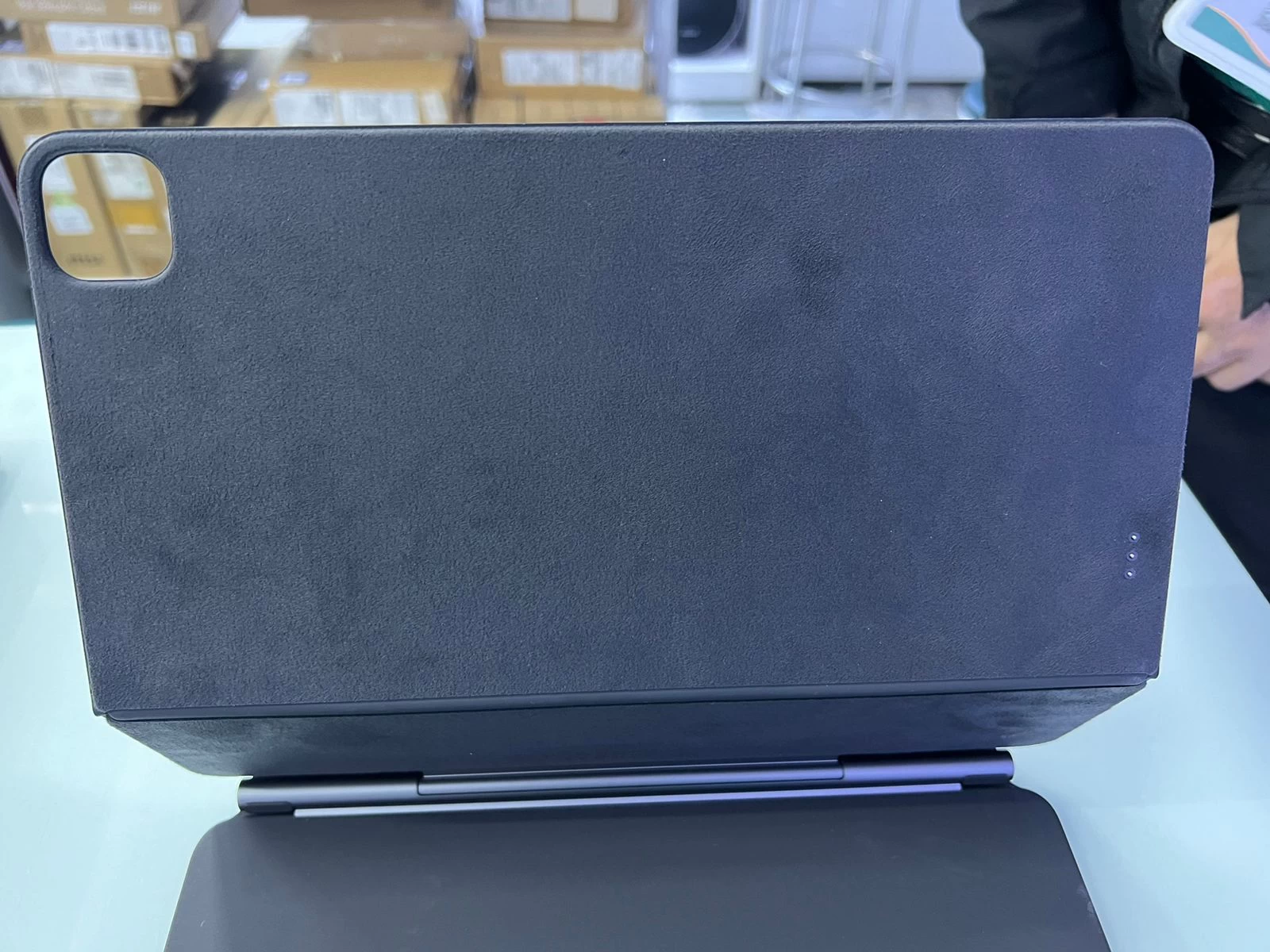 Một trong những ưu điểm của phụ kiện bao da kèm bàn phím Magic Keyboard cho iPad Pro 12.9 inch chính hãng là nó được tích hợp thêm Trackpad. Phần di chuyển chuột này giúp người dùng thao tác nhanh và tiện lợi hơn, không cần mang theo một chuột không dây đi kèm. Trackpad trên bàn phím Magic Keyboard này được làm từ chất liệu nhôm với thiết kế khá linh hoạt và phản hồi nhanh nhạy.