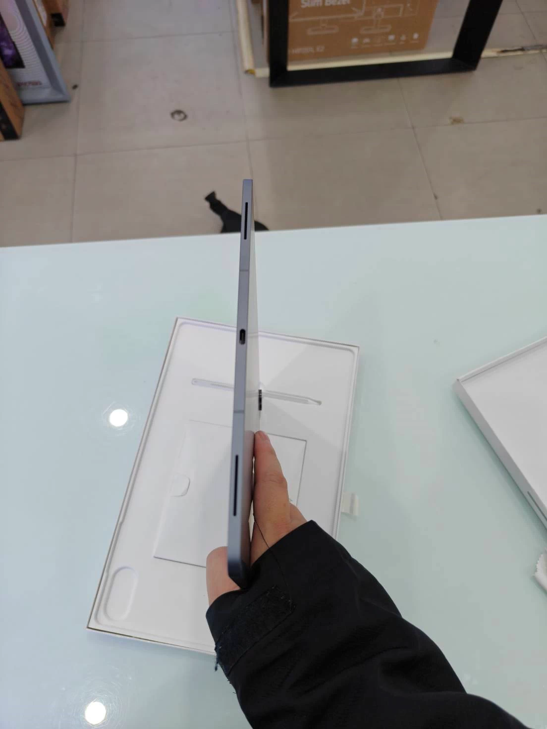 Về màu sắc, Tab S11 Ultra mang đến hai lựa chọn là Xám và Bạc. Trong đó, phiên bản màu Xám thực sự nổi bật với vẻ đẹp sang trọng, tinh tế và mang đậm chất công nghệ. Tổng thể máy không chỉ mỏng mà còn được gia công rất tỉ mỉ, từng đường nét đều toát lên sự cao cấp, làm tăng cảm giác "đáng tiền" khi sở hữu.