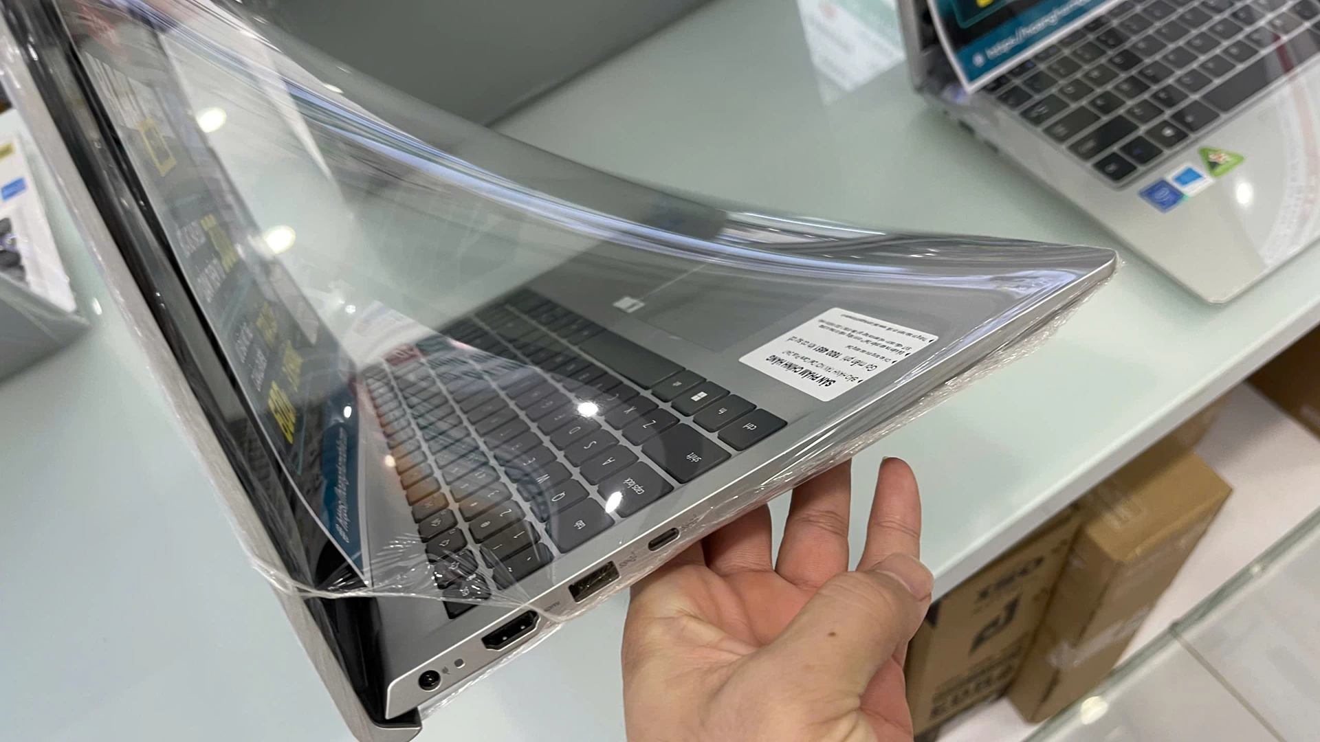 Ngoài ra, máy còn sở hữu hệ thống cổng kết nối đầy đủ và tiện dụng gồm: 1 cổng HDMI 1.4, 1 USB 2.0, 1 USB 3.2 Gen 1, 1 USB Type-C (chỉ truyền dữ liệu), 1 khe cắm thẻ SD, và 1 cổng âm thanh đa năng. Những cổng này giúp người dùng kết nối linh hoạt với nhiều thiết bị ngoại vi như màn hình, máy chiếu, USB, tai nghe hoặc đầu đọc thẻ một cách dễ dàng, không cần bộ chuyển đổi.