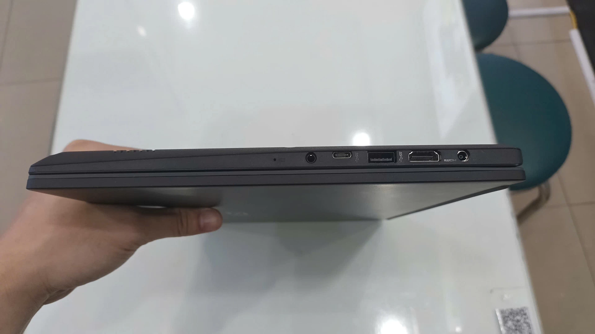 Viên pin 39.3 Whr sử dụng trong suốt một ngày dài. Đa dạng cổng kết nối với HDMI, USB Type-C, ổ cắm 3.5 mm, ổ cắm DC.