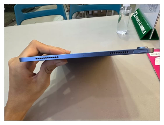 Các nút âm lượng của iPad Air vẫn ở vị trí cũ. Mặt sau của nó được hoàn thiện từ chất liệu nhôm sang trọng, cạnh bên là các khung nhôm được bo vuông ở các góc. Phía trước là mặt kính với các viền màn hình cực mỏng, đem đến không gian trải nghiệm thoải mái cho người dùng.
