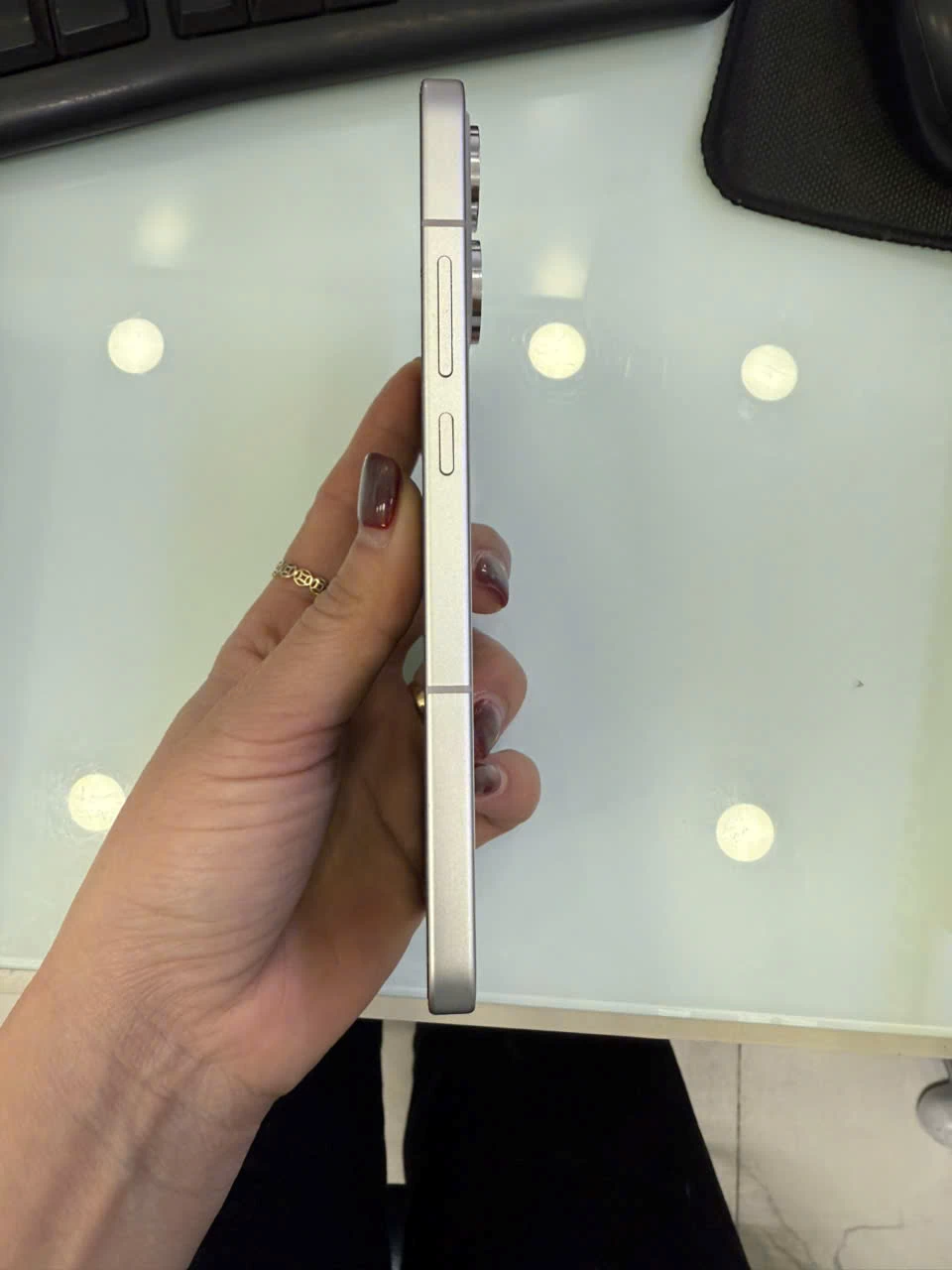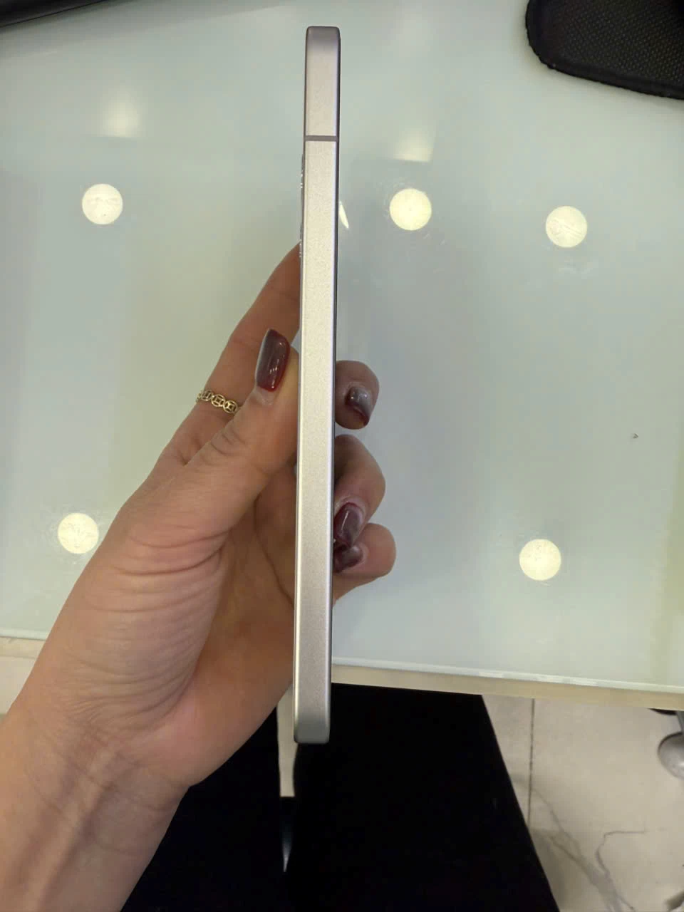 Không chỉ là một thiết kế bắt mắt, bề mặt kính nhám mờ còn hạn chế bám vân tay và cảm giác trơn trượt khi cầm, đem lại sự thoải mái và chắc chắn. Khung viền kim loại được gia công tỉ mỉ giúp tổng thể máy vừa nhẹ (khoảng 187g), vừa mỏng (7.42mm), dễ dàng thao tác bằng một tay mà không gây cảm giác cấn hay nặng.