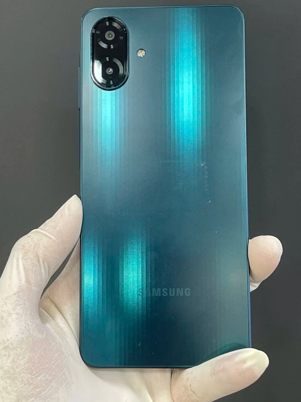 Samsung Galaxy A07 sở hữu thiết kế quen thuộc nhưng vẫn tạo được nét riêng nhờ cụm camera kép đặt dọc hình viên thuốc và logo Samsung in ở phần dưới mặt lưng. Phần vỏ được hoàn thiện từ nhựa polycarbonate với bề mặt nhám, hạn chế bám vân tay và cho cảm giác cầm nắm chắc tay. Các cạnh máy bo cong nhẹ tạo sự thoải mái khi sử dụng lâu dài.