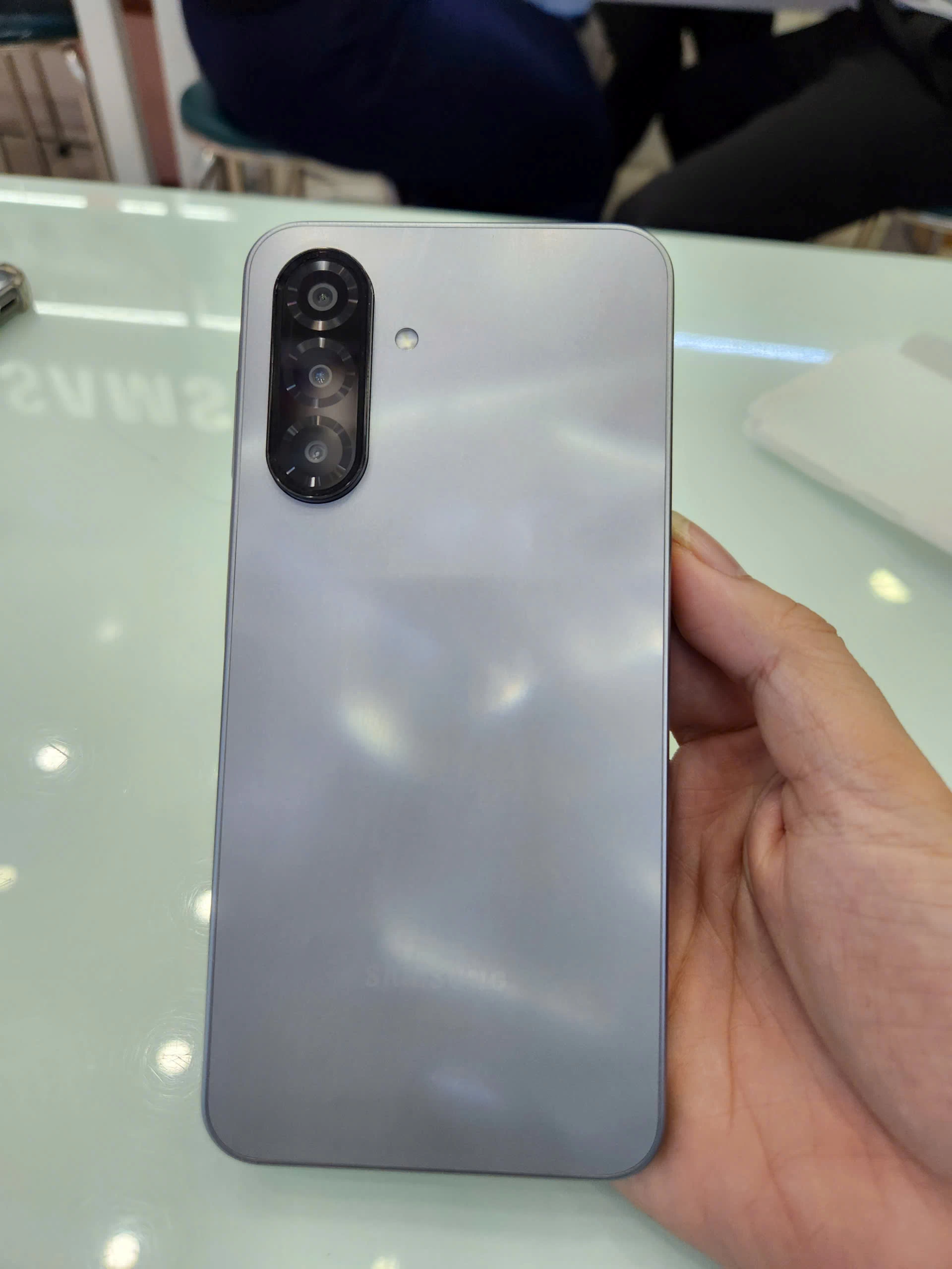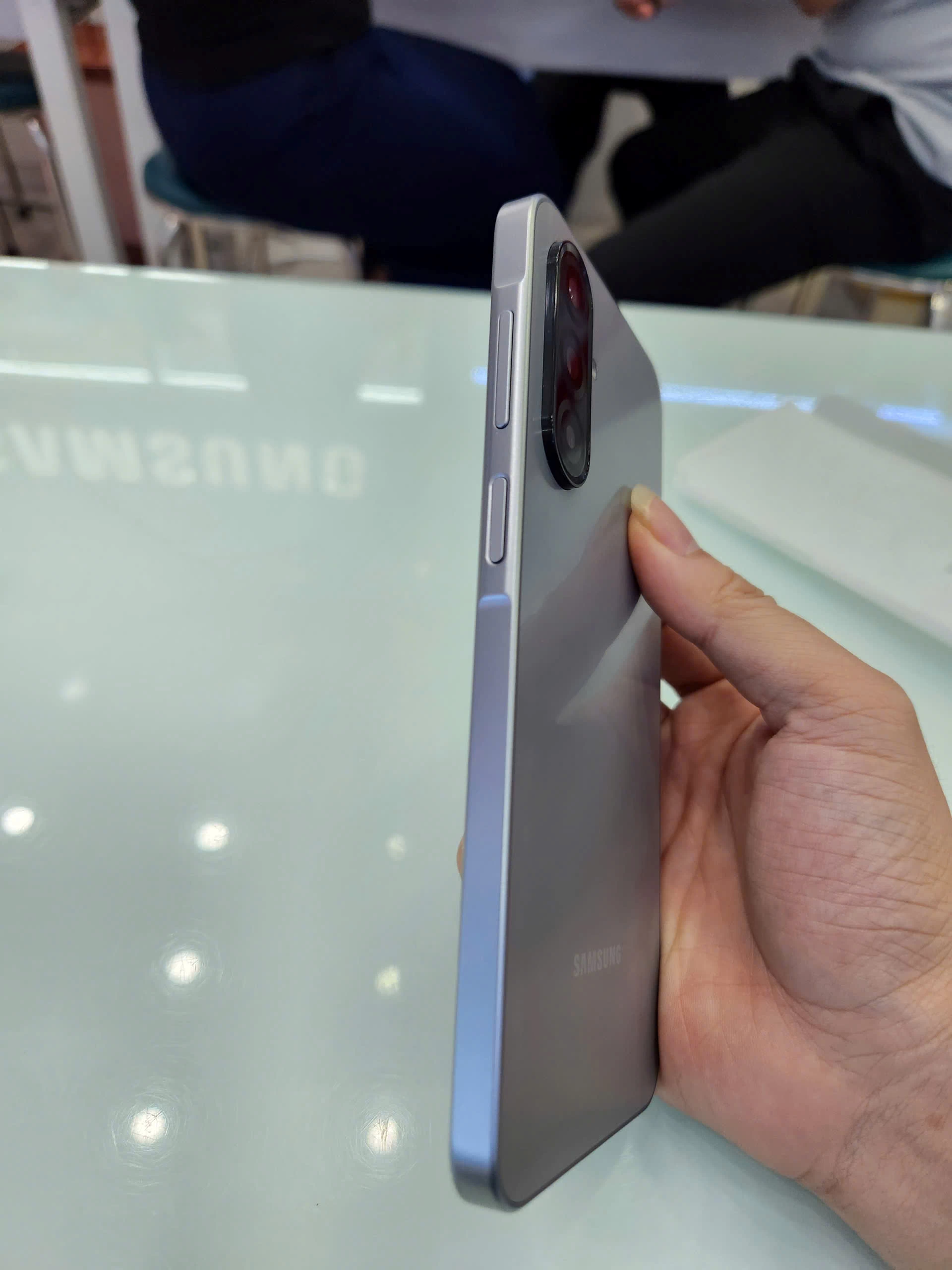 Samsung sử dụng các tông màu trẻ trung, dễ tiếp cận như đen, xanh và xám, mang đến sự lựa chọn phong phú cho người dùng ở nhiều độ tuổi khác nhau. Kiểu dáng phẳng, bo cong nhẹ ở các cạnh viền tạo cảm giác thoải mái khi cầm trên tay, ngay cả khi sử dụng trong thời gian dài.