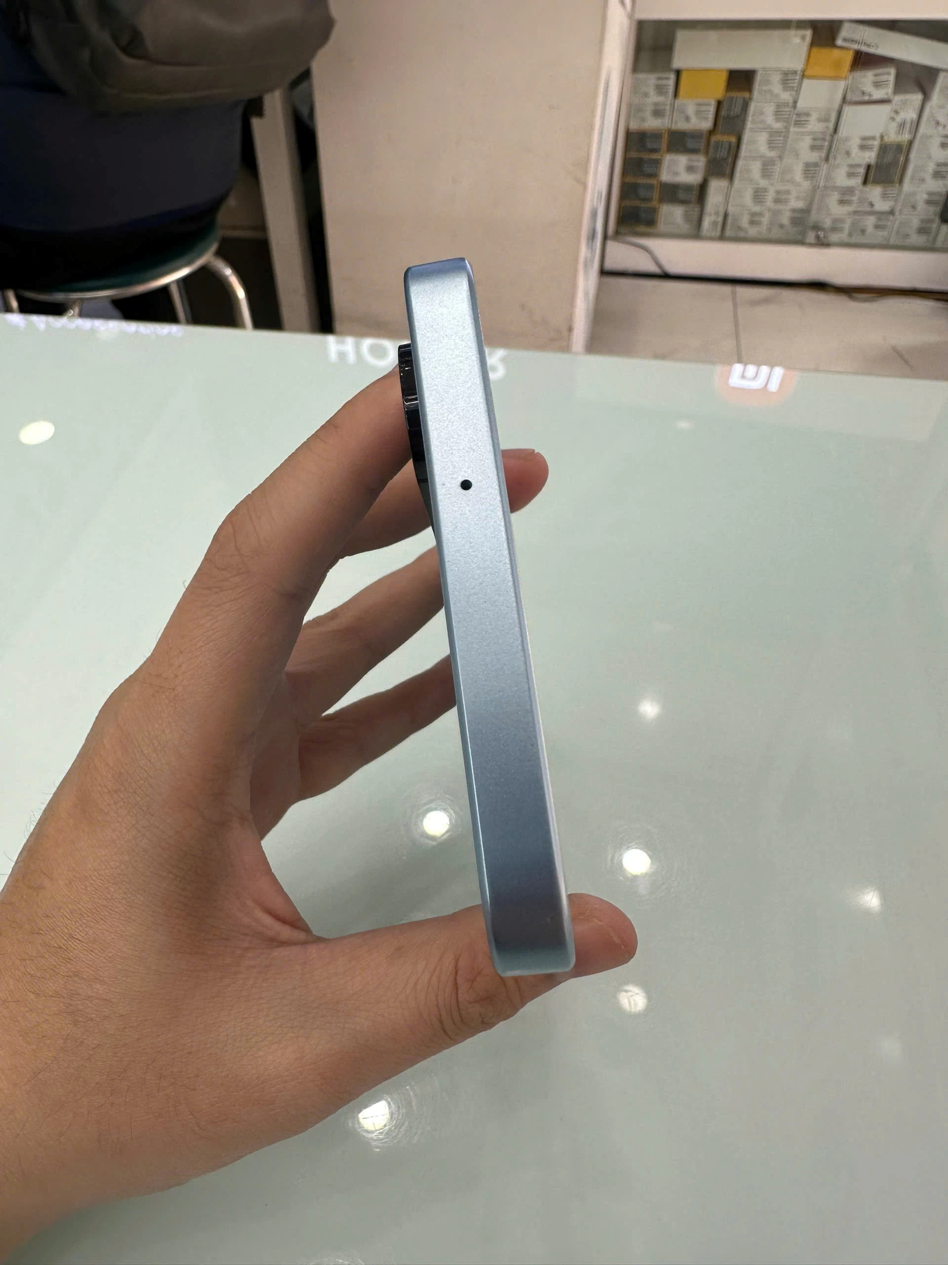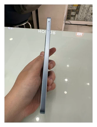Mặt trước của thiết bị nổi bật với màn hình giọt nước, viền mỏng hai bên và trên, chỉ hơi dày ở phần dưới. Kiểu thiết kế này giúp tối ưu không gian hiển thị, mang đến trải nghiệm hình ảnh rộng rãi và sắc nét, đặc biệt khi xem phim, chơi game hoặc lướt web. Dù không sử dụng màn hình đục lỗ như các dòng flagship, kiểu giọt nước vẫn được nhiều người dùng yêu thích nhờ sự đơn giản và quen thuộc.