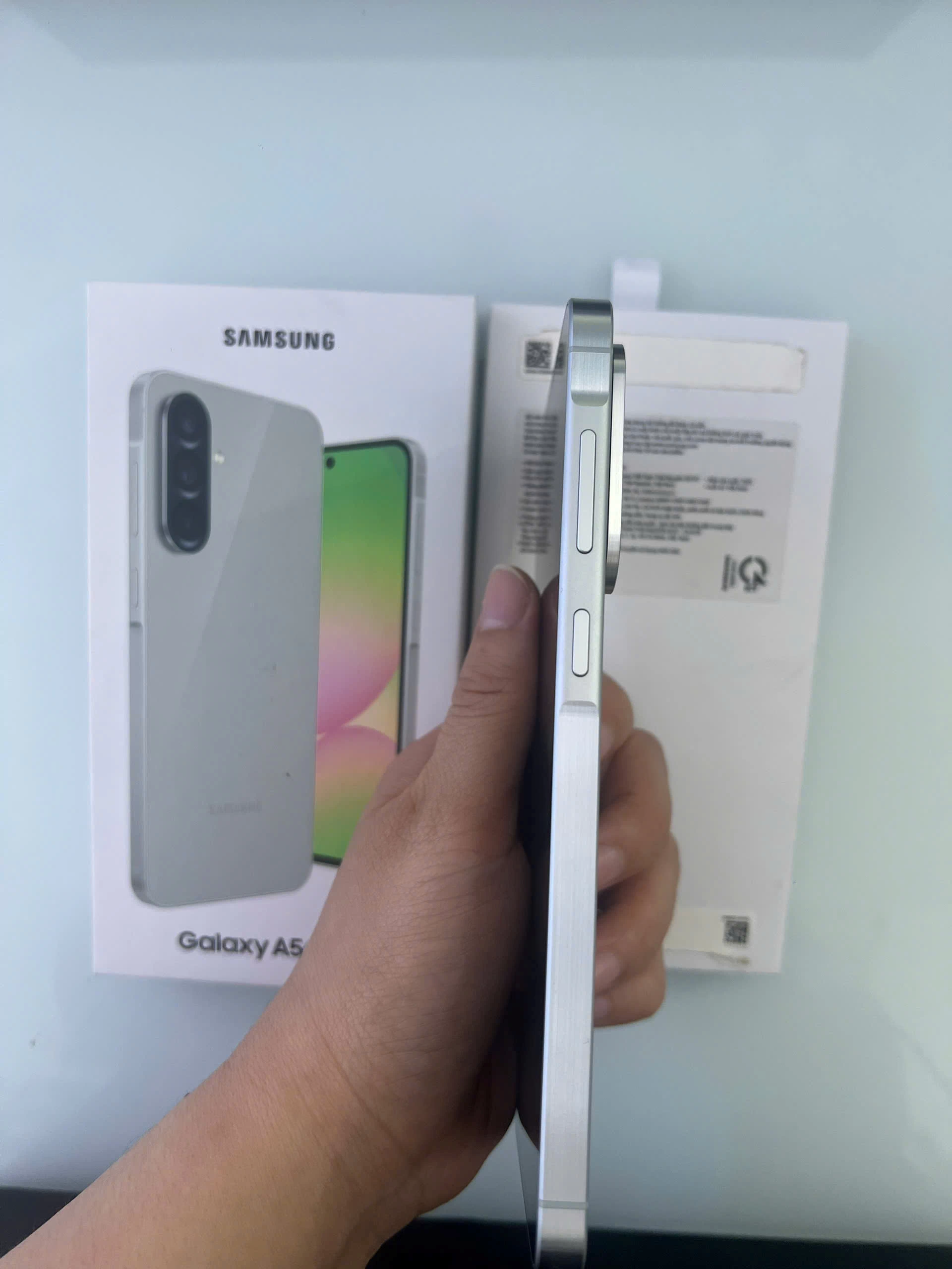 Điện thoại sở hữu mặt lưng kính Gorilla Glass Victus+, mang đến vẻ ngoài bóng bẩy và sang trọng. Khung viền kim loại chắc chắn không chỉ tăng cường độ bền mà còn tạo cảm giác cầm chắc tay. Với độ mỏng chỉ 7.4mm và trọng lượng nhẹ hơn so với người tiền nhiệm khoảng 198g, Galaxy A56 5G mang lại cảm giác thoải mái và dễ dàng sử dụng trong thời gian dài.