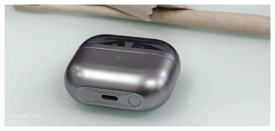 Hộp sạc của Buds3 Pro cũng được thiết kế tinh tế và gọn nhẹ, dễ dàng bỏ túi mang theo bên mình. Chất liệu vỏ hộp tương đồng với tai nghe, tạo nên sự đồng nhất về mặt thẩm mỹ. Nắp hộp đóng mở chắc chắn, bảo vệ tai nghe an toàn khi không sử dụng. Bên cạnh đó, đèn LED báo hiệu tình trạng pin trực quan, giúp người dùng dễ dàng theo dõi thời lượng pin còn lại.