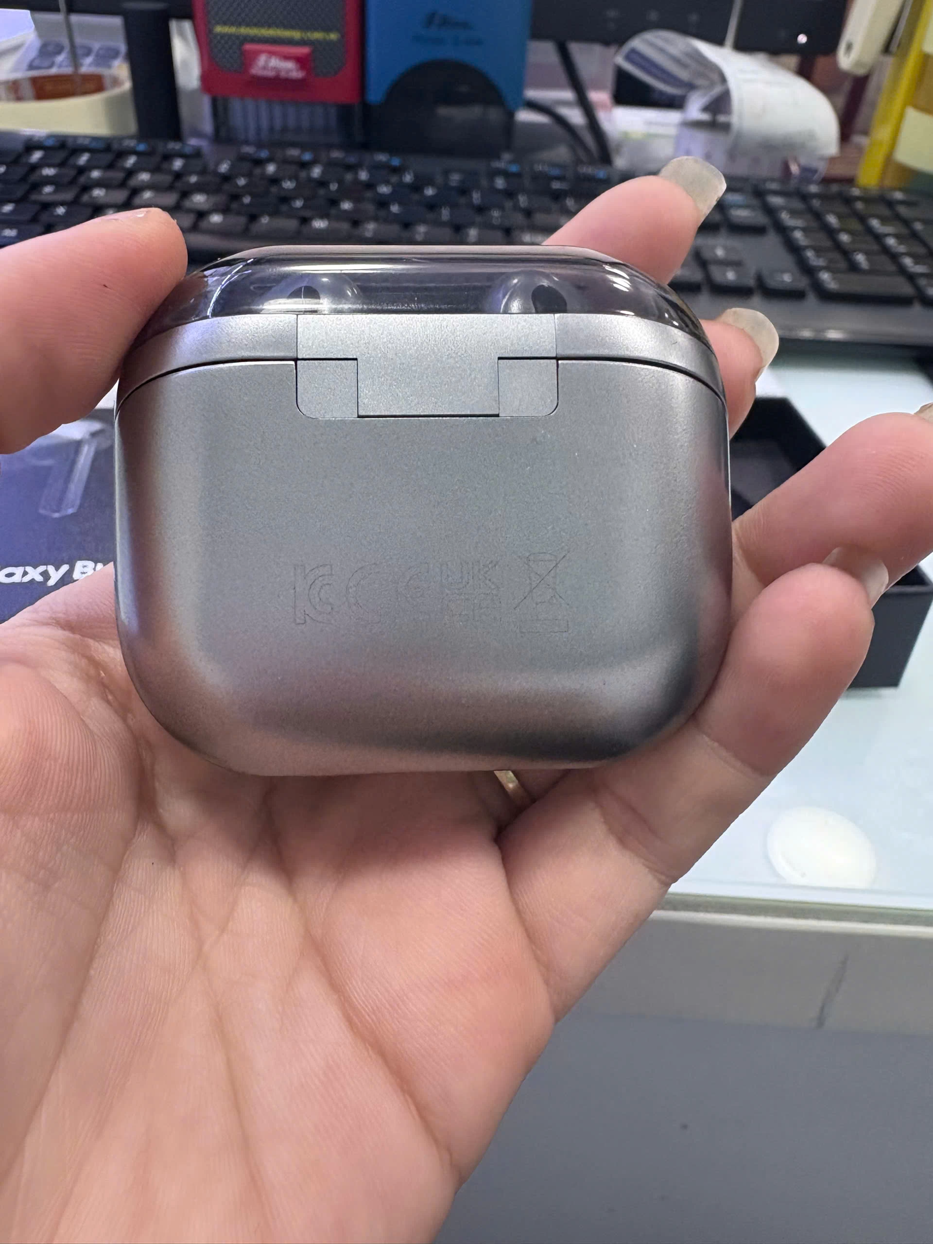 Cả hai mẫu tai nghe đều được trang bị hộp sạc nhỏ gọn, dễ dàng mang theo bên mình. Tuy nhiên, hộp sạc của Samsung Galaxy Buds3 Pro có thiết kế vuông vắn hơn, trong khi hộp sạc của Buds2 Pro lại bo tròn mềm mại hơn.