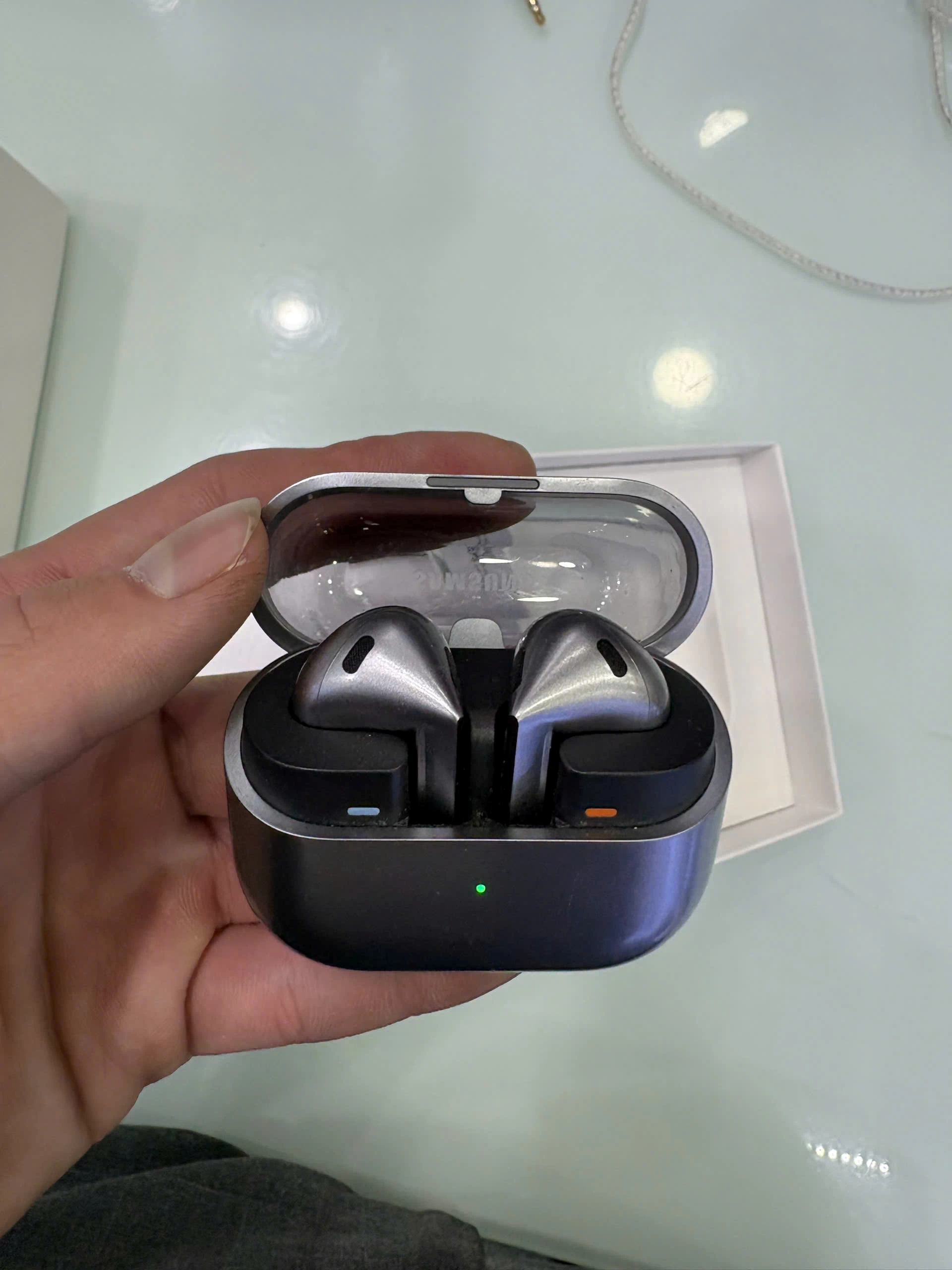 Galaxy Buds3 được thiết kế với hệ thống thoáng khí giúp giảm áp lực trong tai, ngăn ngừa cảm giác bí bách khi đeo lâu. Hộp sạc của Galaxy Buds3 có thiết kế nhỏ gọn, dễ dàng mang theo trong túi quần hoặc túi xách. Vỏ ngoài của hộp sạc được làm từ chất liệu cao cấp, mang lại vẻ ngoài sang trọng.