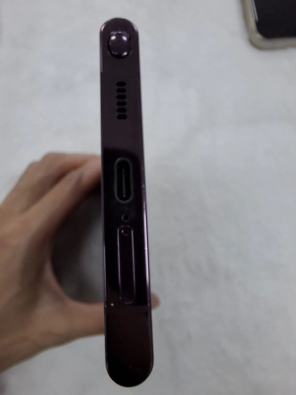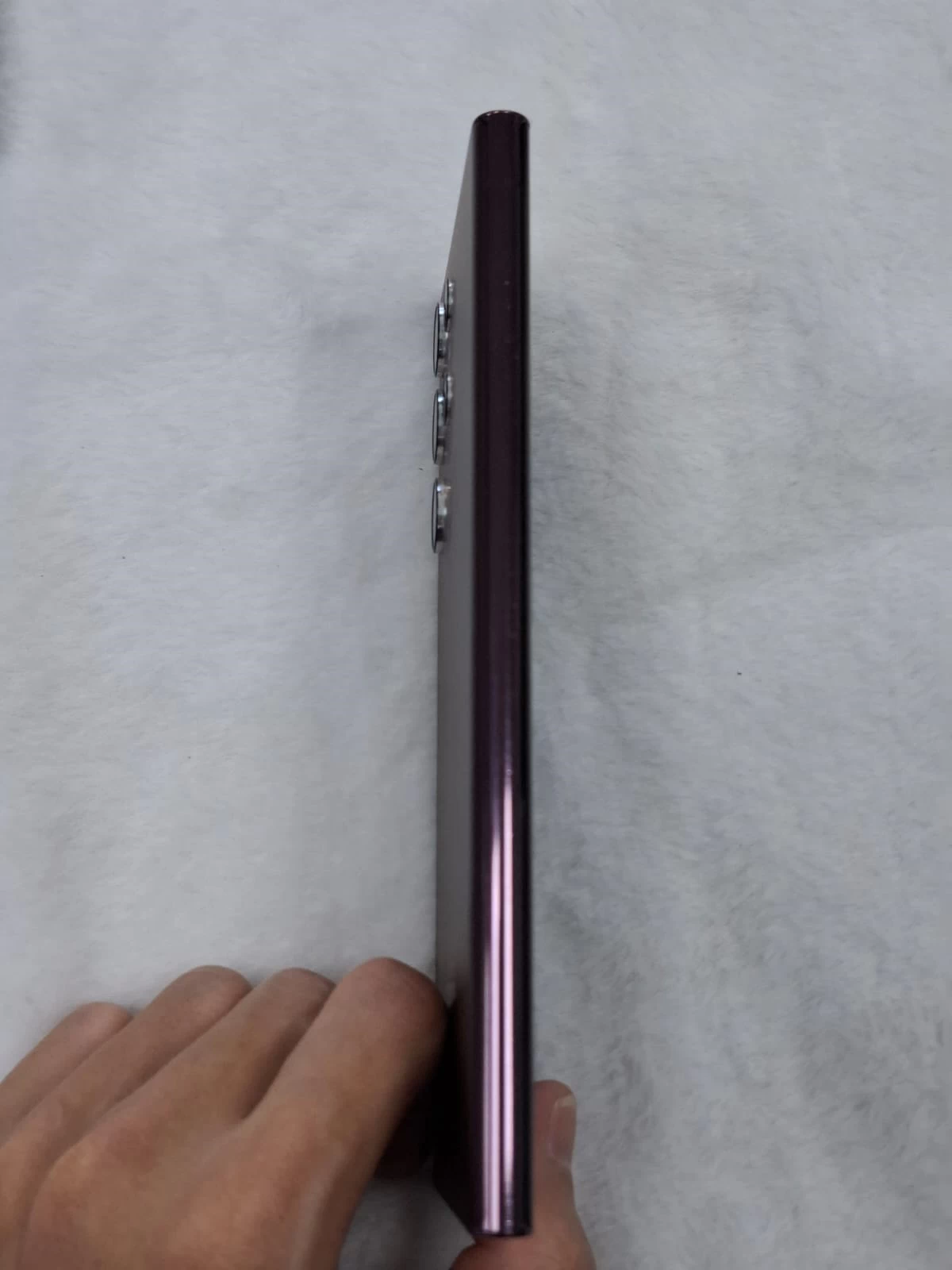 Cảm giác cầm trên S22 Ultra đều cực kỳ thoải mái và dễ chịu, chắc tay. Các phần tiếp xúc giữa 2 vật liệu là nhôm gia cường và kính ở mặt lưng, màn hình đều rất chỉn chu. Vị trí giữa phần viền hông và phần cạnh đáy cũng được gia công đủ khéo để khi dùng máy 1 tay, tì vào lòng bàn tay không có cảm giác khó chịu. Giống như những đời siêu phẩm trước, Galaxy S22 Ultra cũng có khả năng kháng nước và bụi bẩn IP68.