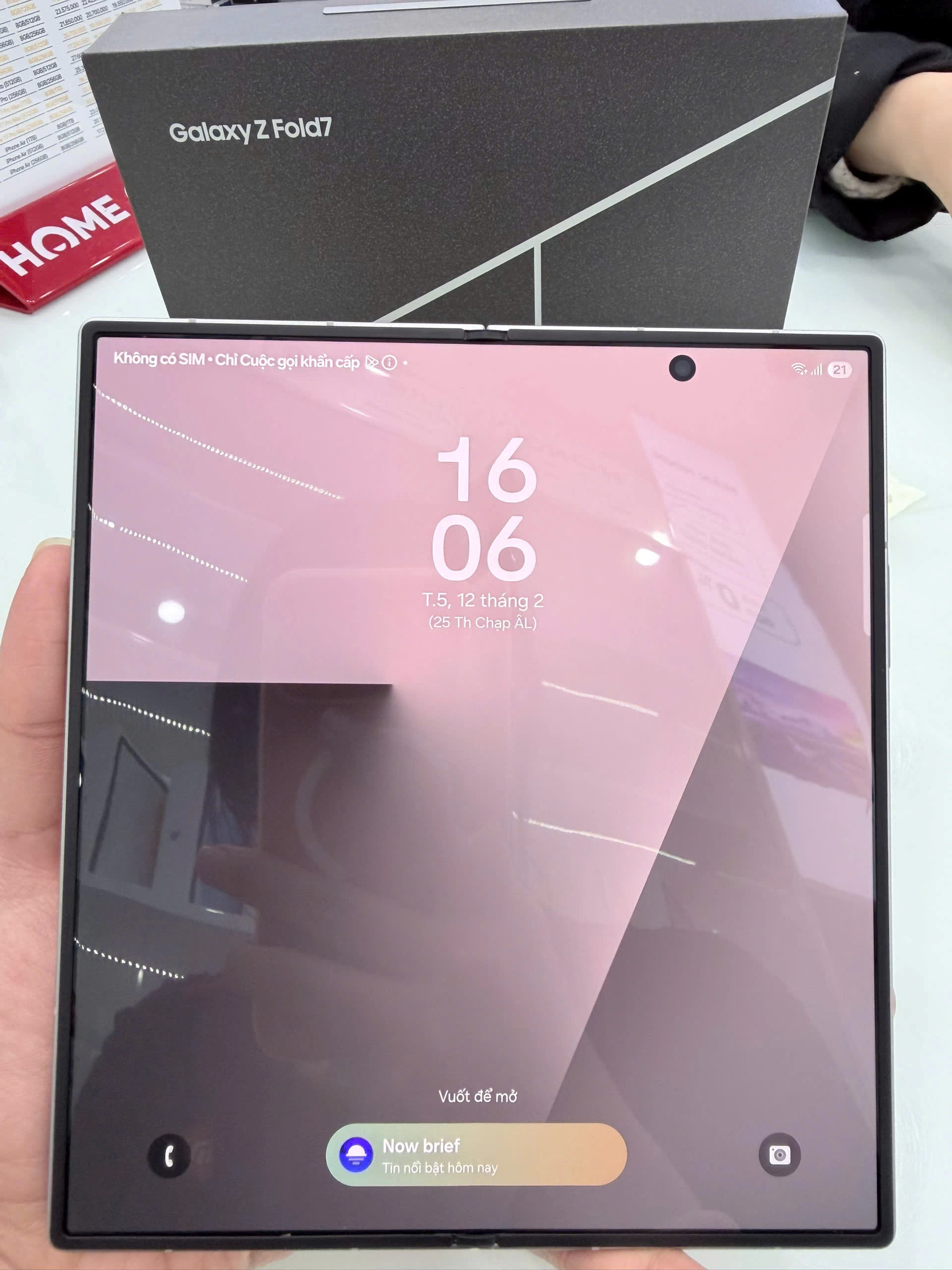 Samsung Galaxy Z Fold7 sở hữu hai màn hình độc lập, trong đó màn hình chính là Dynamic AMOLED 2X 8.0 inch với độ phân giải 2184x1968 pixel. Tần số quét 120Hz giúp hiển thị sắc nét, mượt mà và sống động trong mọi điều kiện ánh sáng. Với độ sáng lên đến 2600 nit, bạn có thể sử dụng thiết bị ngay cả dưới trời nắng gắt mà không gặp trở ngại. Đặc biệt, AI hỗ trợ tối ưu hóa trải nghiệm màn hình lớn với các tính năng như Now Brief (hiển thị tóm tắt thông tin nhanh), chỉnh ảnh tạo sinh (generative editing), giúp bạn sáng tạo dễ dàng hơn bao giờ hết.