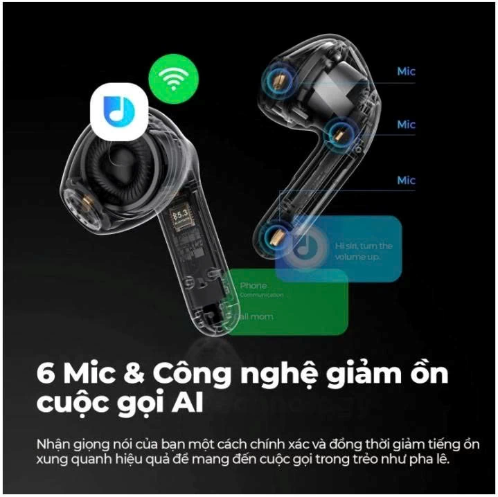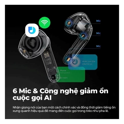 Không chỉ vậy, tai nghe SoundPEATS còn được tích hợp 6 mic kết hợp cùng công nghệ AI nâng cao chất lượng cuộc gọi. Trí tuệ nhân tạo xử lý lọc tiếng ồn và tạp âm giúp âm thanh hai chiều đều đạt được chất lượng tốt nhất. Âm thanh rõ ràng mang đến cuộc trò chuyện, trao đổi thông tin được diễn ra hiệu quả nhờ bộ 3 mic phản hồi, mic giao tiếpmic ngưng tụ trên mỗi tai nghe.