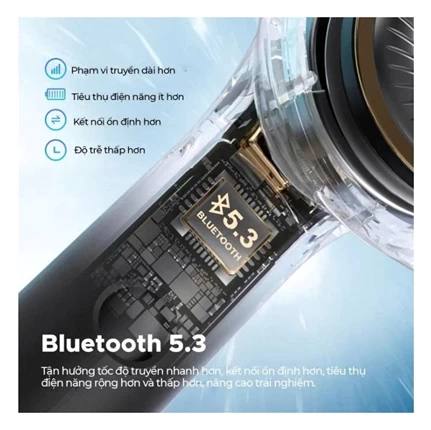 Bluetooth 5.3 hiện đại, kết nối ổn định, hạn chế tiêu thụ pin