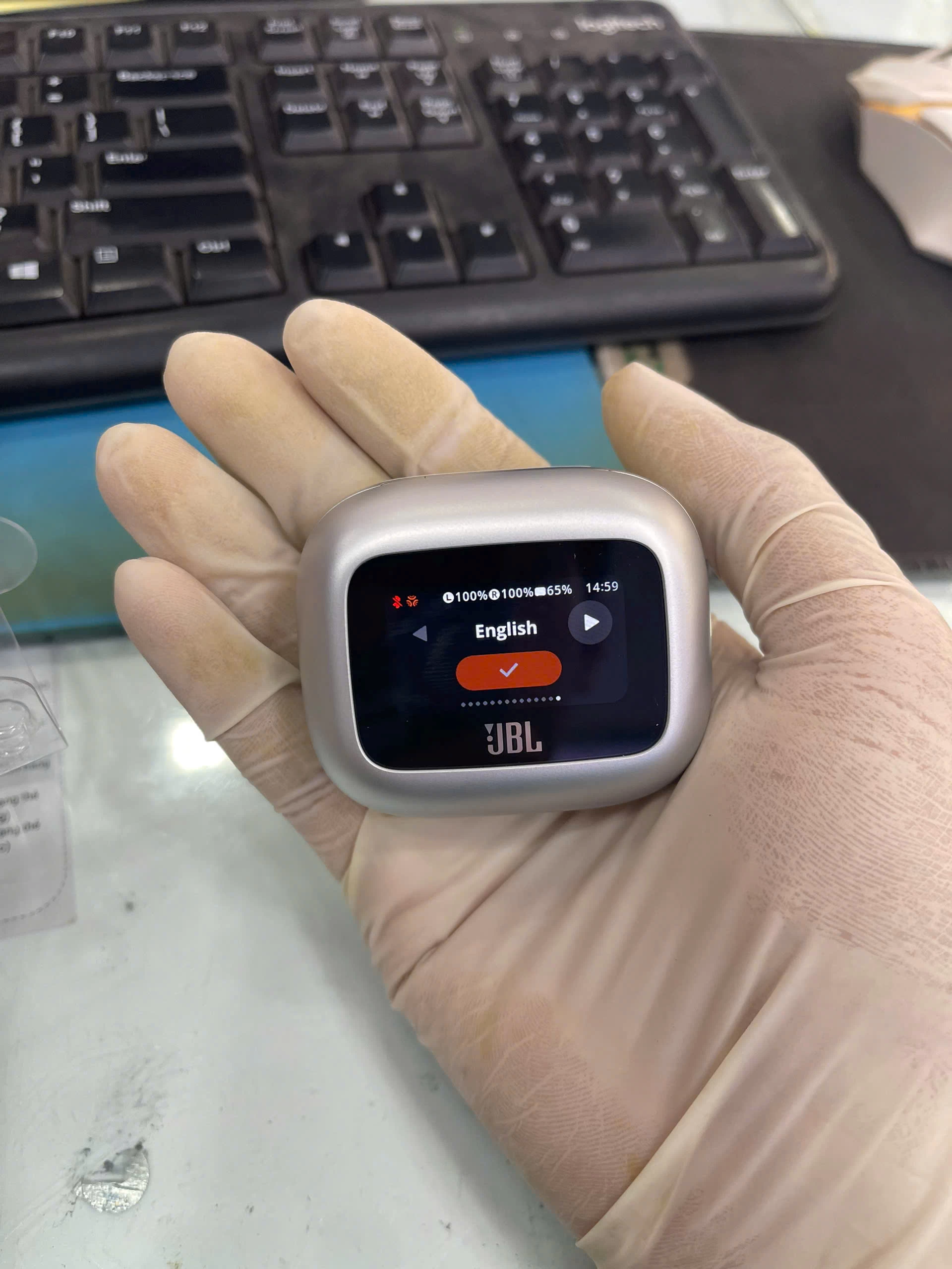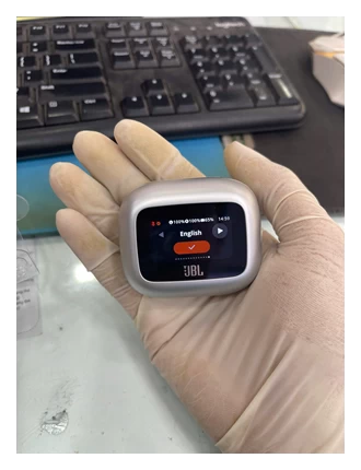 Cụ thể, hộp sạc được trang bị màn hình LED 1.45 inch, cho phép người dùng dễ dàng theo dõi bài hát đang phát, danh sách phát, trạng thái kết nối Bluetooth và thông báo cuộc gọi. Đặc biệt, thay vì sử dụng các nút bấm vật lý, bạn có thể thay đổi âm lượng, chuyển bài hát, bật/tắt chế độ chống ồn và nhận cuộc gọi chỉ với thao tác chạm nhẹ trên màn hình.