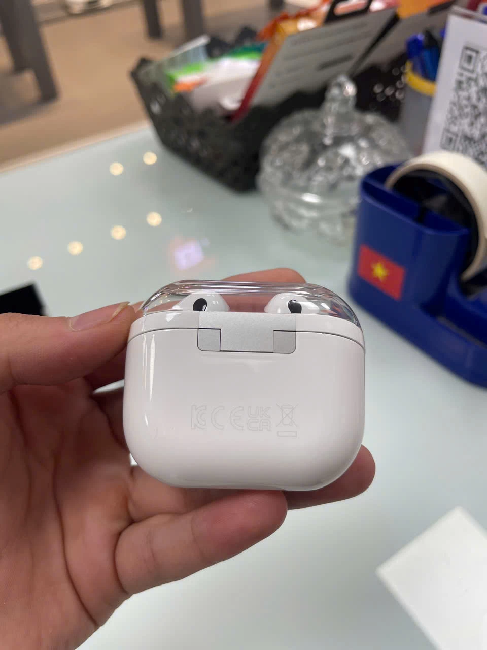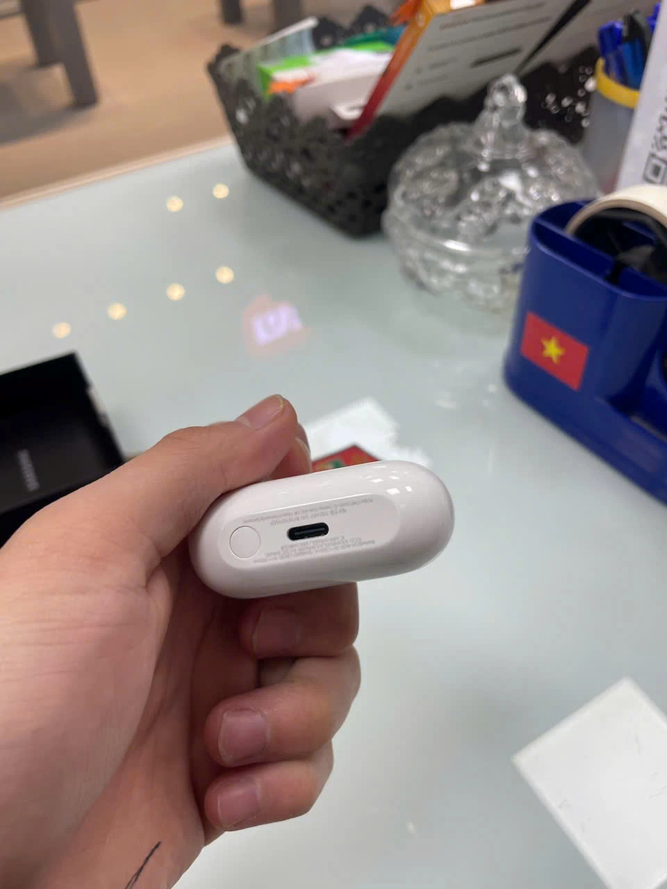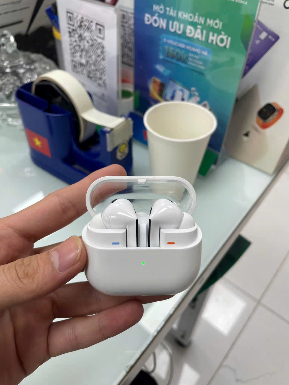 Hộp sạc của Buds3 Pro cũng được thiết kế tinh tế và gọn nhẹ, dễ dàng bỏ túi mang theo bên mình. Chất liệu vỏ hộp tương đồng với tai nghe, tạo nên sự đồng nhất về mặt thẩm mỹ. Nắp hộp đóng mở chắc chắn, bảo vệ tai nghe an toàn khi không sử dụng. Bên cạnh đó, đèn LED báo hiệu tình trạng pin trực quan, giúp người dùng dễ dàng theo dõi thời lượng pin còn lại.