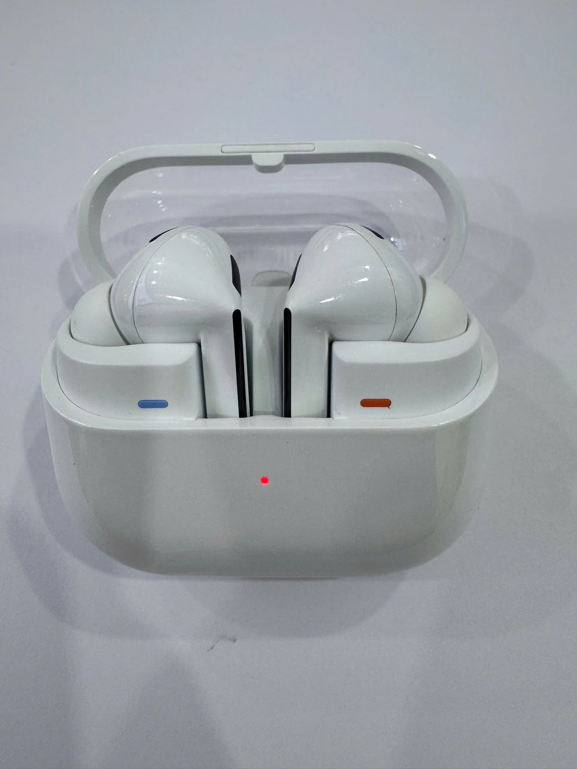 Hộp sạc của Buds3 Pro cũng được thiết kế tinh tế và gọn nhẹ, dễ dàng bỏ túi mang theo bên mình. Chất liệu vỏ hộp tương đồng với tai nghe, tạo nên sự đồng nhất về mặt thẩm mỹ. Nắp hộp đóng mở chắc chắn, bảo vệ tai nghe an toàn khi không sử dụng. Bên cạnh đó, đèn LED báo hiệu tình trạng pin trực quan, giúp người dùng dễ dàng theo dõi thời lượng pin còn lại.