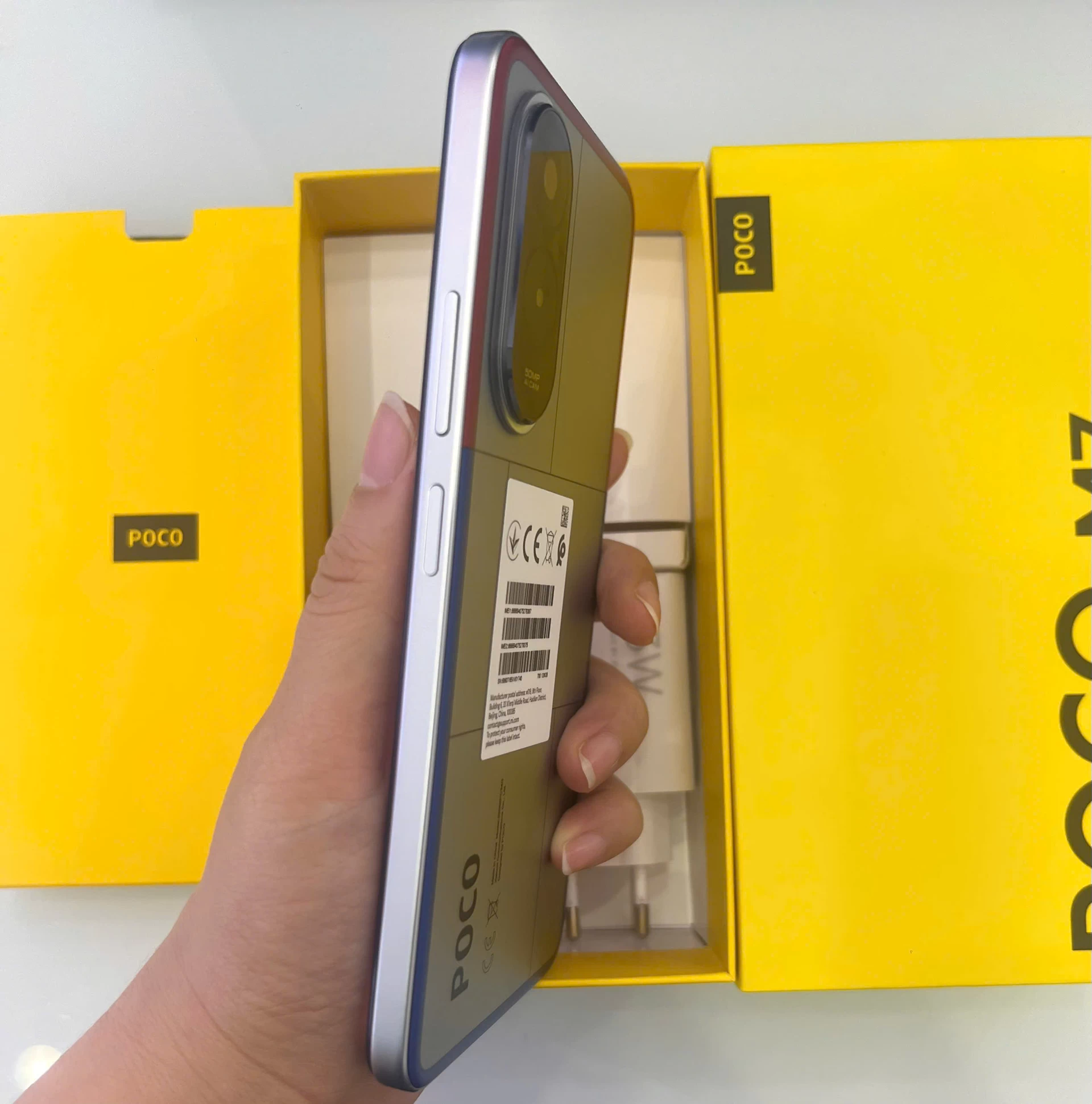 POCO M7 mang đến diện mạo sang trọng, hiện đại với phong cách thiết kế tinh giản nhưng đầy cuốn hút. Thân máy được chế tác tỉ mỉ với mặt lưng cong bốn cạnh, kết hợp các góc bo tròn mềm mại, mang lại cảm giác cầm nắm thoải mái và chắc chắn trong lòng bàn tay. Với kích thước 169.48 x 80.45 x 8.40 mm cùng trọng lượng 214g, thiết bị đạt được sự cân bằng lý tưởng giữa độ mỏng, độ bền và sự tiện dụng khi sử dụng lâu dài.