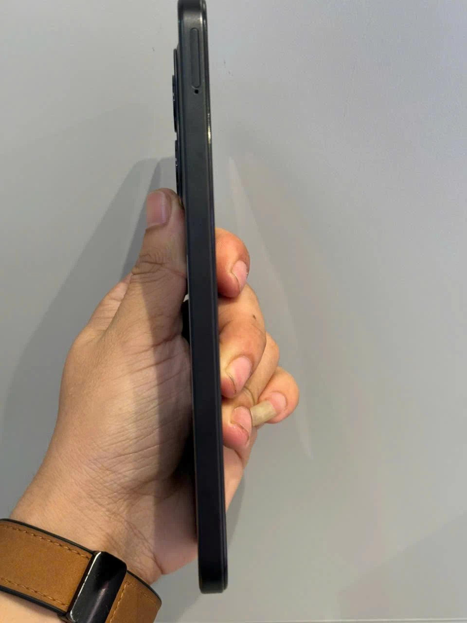Viền màn hình được tinh gọn, giúp tối ưu không gian hiển thị, trong khi cảm biến vân tay được đặt cạnh bên mang lại sự thuận tiện khi thao tác mở khóa. Các tùy chọn màu sắc như Đen Bán Dạ, Cam Hoàng Hôn, Xanh Lam Nguyệt,... góp phần tạo nên cá tính cho người dùng hiện đại.