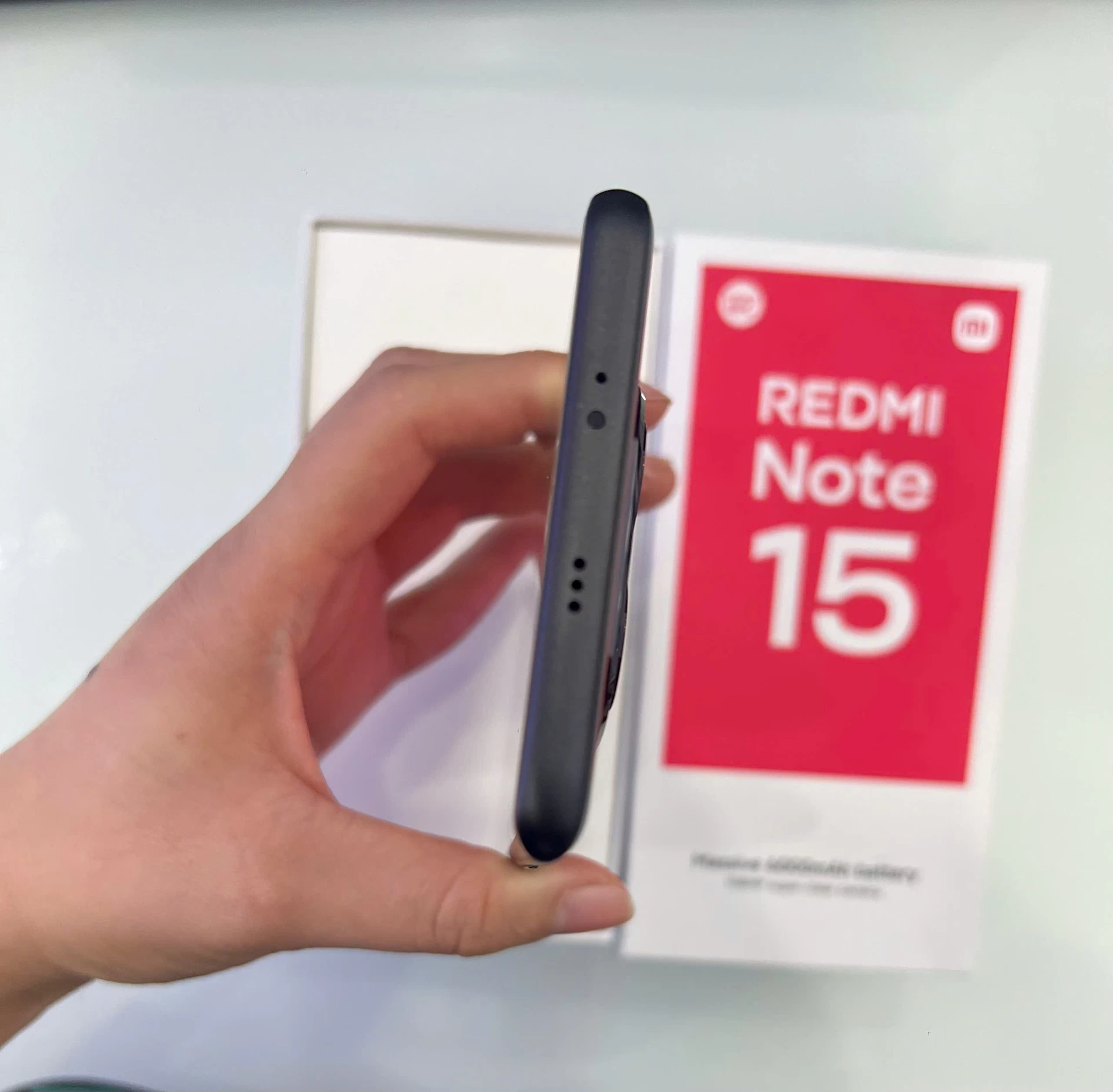 Khung viền bo cong nhẹ, kết hợp độ mỏng khoảng 7,35 mm giúp tổng thể thiết bị gọn gàng hơn so với kích thước thực tế. Cụm camera sau được bố trí nổi vừa phải, tạo điểm nhấn nhưng không quá thô. Trọng lượng khoảng 180g giúp Redmi Note 15 mang lại cảm giác chắc tay, phù hợp cho cả việc sử dụng một tay trong thời gian dài.