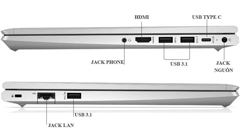 Ngoài ra, HP ProBook 440 G8 614F5PA được tích hợp hệ thống cổng kết nối từ có dây tới không dây khá đa dạng. Các kết nối có dây và không dây bao gồm: 1 cổng HDMI; 1 cổng USB-C/DisplayPort; 3 cổng USB 3.1 Type-A; 1 cổng âm thanh 3.5mm; 1 cổng LAN RJ45; 1 khe đọc thẻ nhớ SD; chuẩn WiFi 6 và Bluetooth 5.0.