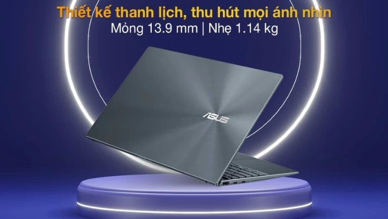 Thiết bị có độ dày chỉ 13.9mm và cân nặng chỉ ở mức 1.14kg, rất phù hợp với những ai hay mang laptop làm việc ở nhiều nơi. Qua đó, có thể thấy Asus luôn cho ra đời những sản phẩm lấy nhu cầu của người dùng làm nền tảng hoàn thiện trong thiết kế. Mặc dù vô cùng mỏng nhẹ, thiết bị này đã đạt được chứng nhận MIL-STD 810G theo tiêu chuẩn độ bền quân đội Mỹ.