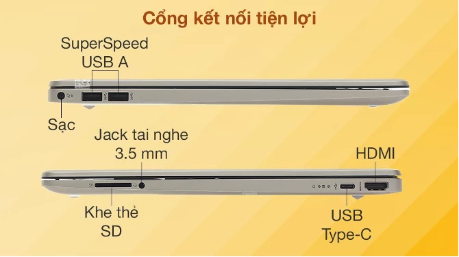 Sự tốc độ còn được thể hiện trên những kết nối của Laptop HP 15s-du3590TU - 63P86PA. Bạn sẽ có kết nối mạng Wi-Fi 802.11a/b/g/n/ac và Bluetooth cho mạng không dây. Ngoài ra laptop còn sở hữu cổng USB Type-A, USB Type-C; cổng HDMI 1.4b; jack tai nghe tích hợp micro. Ấn tượng nhất là cổng kết nối USB Type-C tiên tiến, không chỉ cắm tiện lợi cả 2 đầu mà còn cho tốc độ truyền dữ liệu lên tới 5Gb/s. Bạn sẽ có thể kết nối dễ dàng với các thiết bị ngoại vi để phục vụ tối ưu cho công việc.