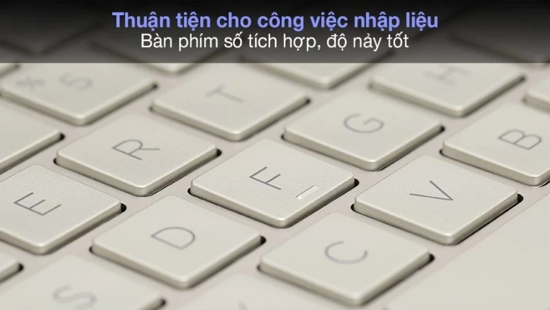 Phần bàn phím của máy được laptop HP thiết kế rất tinh tế khi bề mặt các phím rộng rãi và được phủ một lớp sơn nhám ở trên. Trong quá trình sử dụng thực tế, hành trình phím khá êm, thao tác dễ dàng, linh hoạt và chuẩn xác trong quá trình gõ. Điều này mang lại cho người dùng cảm giác vô cùng thoải mái trong quá trình soạn thảo văn bản hay trả lời email hằng ngày. Đồng thời, HP còn tích hợp dãy phím số ở cạnh bên giúp cho thao tác nhập liệu trở nên nhanh chóng và dễ dàng hơn.