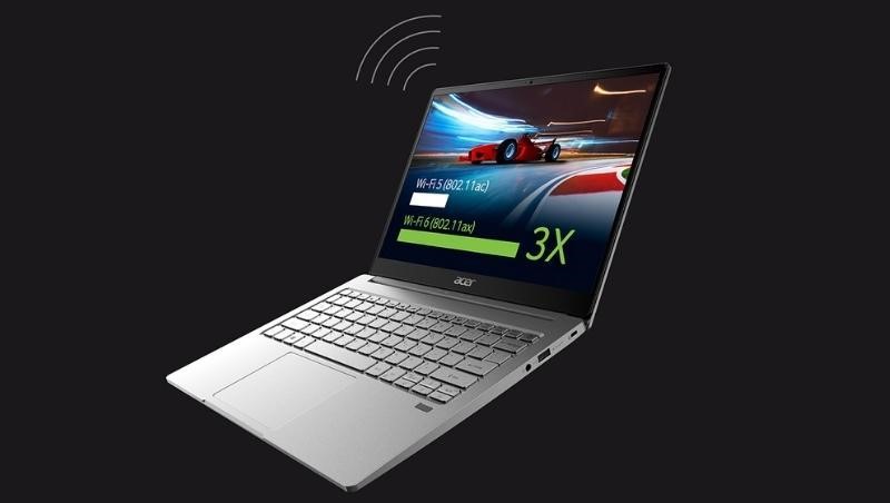 Bên cạnh đó, số đo “3 vòng” của thiết bị là 322.8 mm x 212.2 mm x 15.9 mm và trọng lượng chỉ 1.19kg. Vì vậy, bạn sẽ có thể dễ dàng mang chiếc Acer Swift này đến nhiều địa điểm khác nhau để làm việc. Thiết bị sẽ rất mỏng và nhẹ nên sẽ giữ lại một khoảng không gian lớn bên trong chiếc balo của bạn.