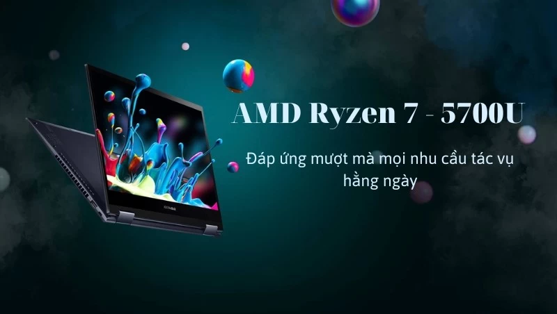Laptop Asus VivoBook Flip 14 TM420UA-EC182W được trang bị bộ vi xử lý AMD Ryzen 7 - 5700U cực kỳ mạnh mẽ. Với 8 nhân 16 luồng, tốc độ xử lý dữ liệu thông thường của thiết bị đạt 1.8 GHz và có thể tăng lên tối đa 4.3 GHz khi sử dụng Turbo Boost. Với cầu hình như thế, chiếc máy này có thể đáp ứng mượt mà mọi nhu cầu tác vụ hằng ngày của người dùng và chơi tốt những dòng game không yêu cầu hiệu năng mạnh.