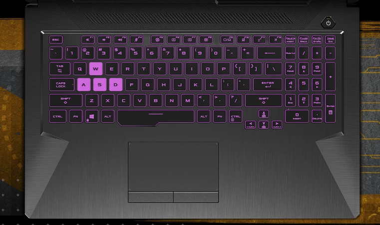 Laptop ASUS TUF Gaming F17 FX706HC-HX105W còn gây ấn tượng mạnh khi sở hữu bàn phím fullsize kiểu máy tính để bàn. Với độ bền bỉ lên đến 20 triệu lần nhấn, phím WASD nổi bật và tích hợp đèn nền RGB hiện đại, mọi trải nghiệm của người dùng đều được tối ưu hóa, dù là khi chơi game, soạn thảo công việc và thực hiện các lệnh di chuyển khác.