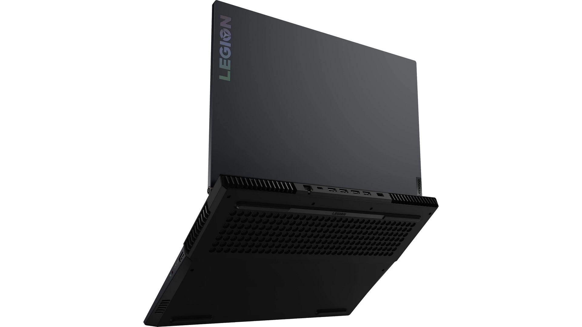 Khác với ngoại hình thường thấy của các dòng laptop gaming, Legion 5 trái lại có vẻ ngoài rất tinh tế giống như một chiếc laptop được thiết kế cho công việc và giải trí. Bạn có thể dùng chiếc máy này để làm việc vào ban ngày rồi cày game vào buổi tối. Về màu sắc, màu chủ đạo vẫn là màu xanh phantom rất phù hợp với thiết bị. Lenovo tiếp tục sử dụng vật liệu nhựa cho vỏ máy, có chất lượng cao và đế có độ cứng tốt. Góc mở của màn hình rất lớn, lên đến 180°. Bản lề tạo ấn tượng chất lượng cao và ổn định.