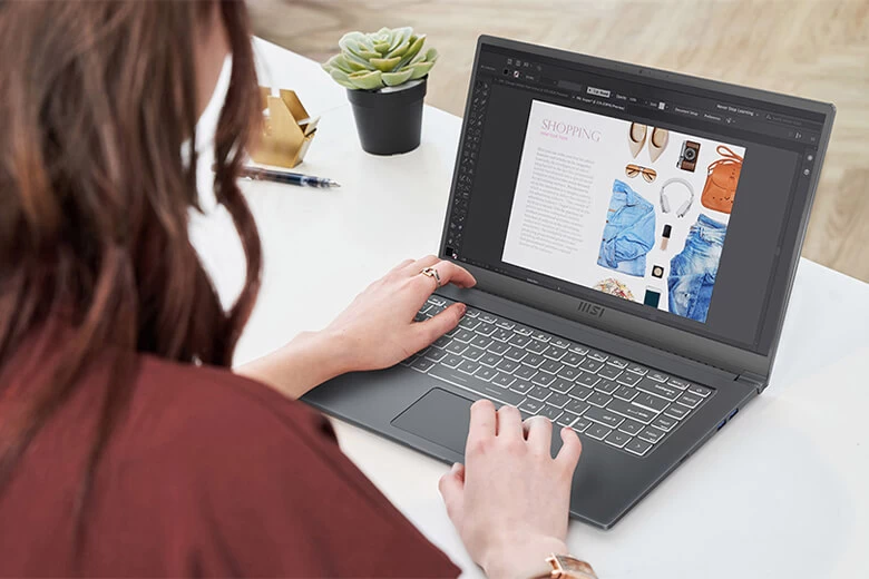 Độ dày của máy chỉ có 16.9mm và trọng lượng Laptop MSI Modern 15 A11M - 1024VN có 1.6kg giúp bạn có thể mang máy đi khắp nơi mà không phải lo về vấn đề cồng kềnh của những máy gaming. MSI Modern 15 được thiết kế với chất liệu nhôm nguyên khối vô cùng sang trọng và giống những dòng laptop cao cấp, logo MSI được đặt ở giữa khẳng định thương hiệu laptop gaming số một thế giới. Đường viền gọn gàng, tinh tế, thanh lịch, tạo nên một tổng thể vô cùng sang trọng, gọn gàng. Độ bền bỉ cao chuẩn quân đội nên Chiếc Laptop MSI Modern 15 A11M - 1024VN hứa hẹn sẽ làm hài lòng những vị khách khó tính nhất.
