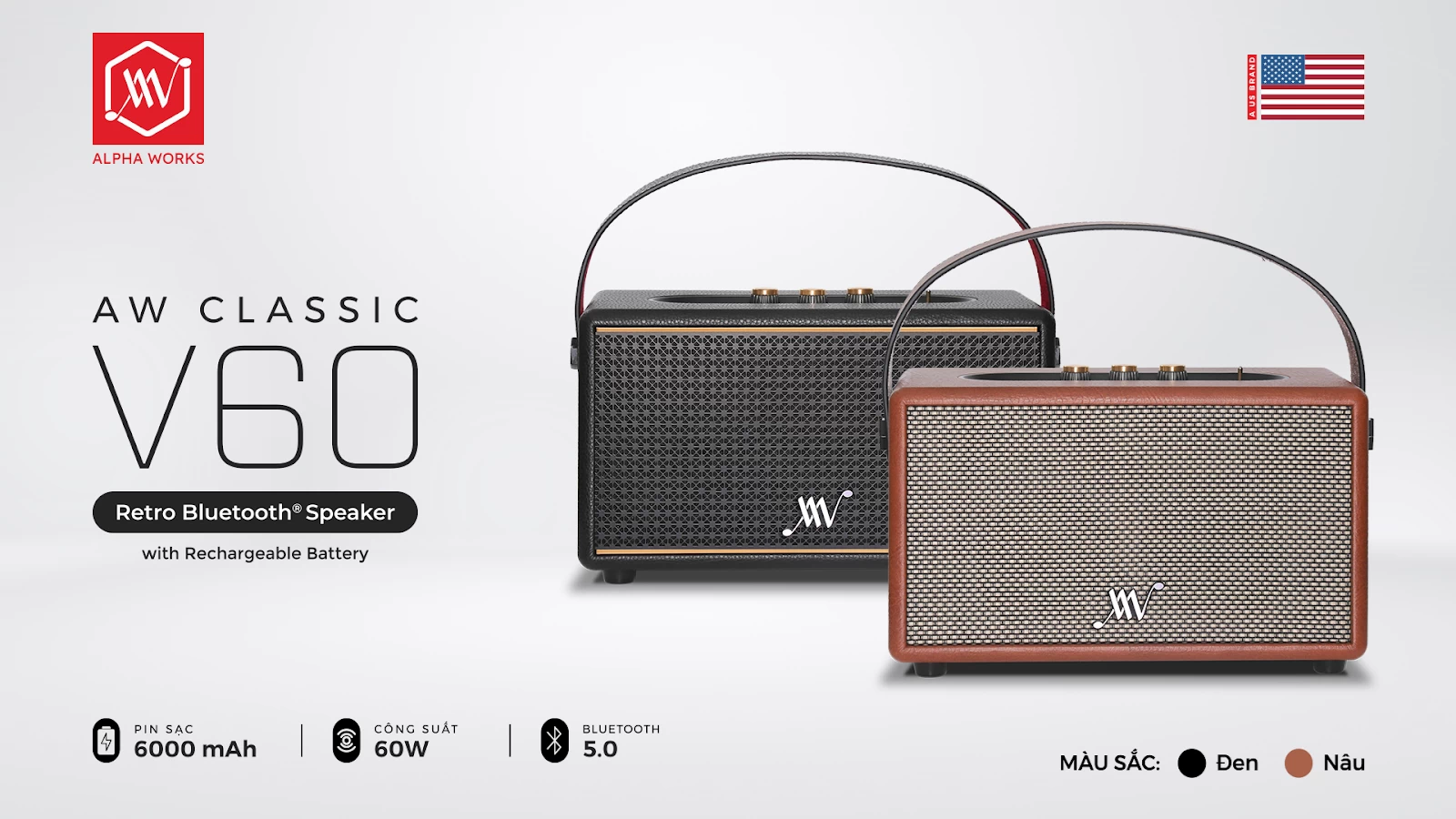 Ra mắt vào khoảng cuối tháng 2 năm nay cùng với 2 model khác, loa Bluetooth Retro Alpha Works Classic V60 là một trong những dòng loa bluetooth chất lượng của Mỹ tiếp tục ra mắt tại thị trường Việt Nam. Thừa kế sự thành công của thế hệ tiền nhiệm micro karaoke A1, AW Classic V60 mang đến cho bạn những trải nghiệm âm thanh chất lượng không phải bàn cãi.