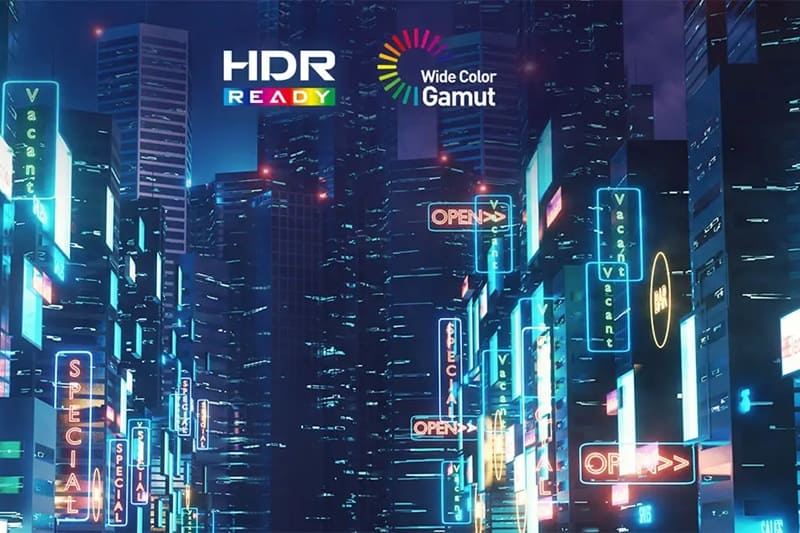Gam màu rộng cùng HDR Ready cho màu sắc rực rỡ, độ sáng – tối tốt, phù hợp cả giải trí lẫn công việc sáng tạo.