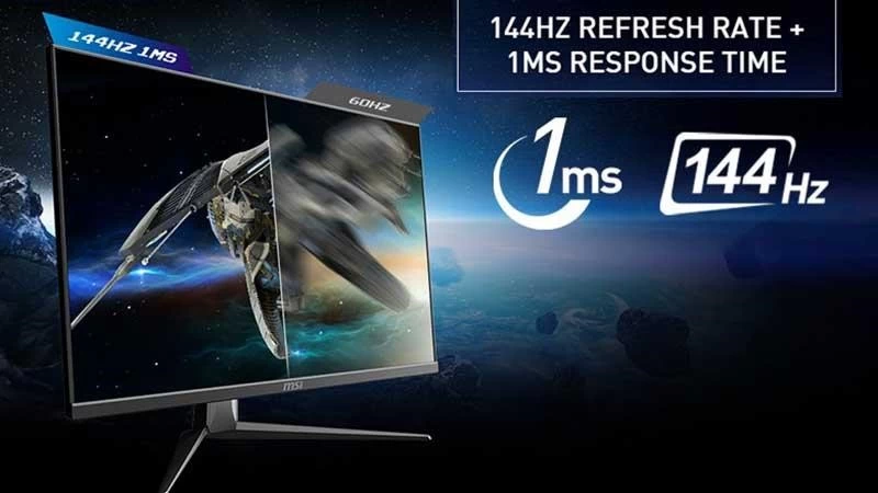 Nếu chỉ có mỗi màn hình IPS LCD cùng những thông số như trên thì có lẽ chiếc màn hình này tới từ MSI sẽ chẳng có gì đặc biệt. Thế nhưng việc nó được trang bị tần số quét màn hình cao lên tới 144Hz và thời gian phản hồi chỉ 1ms thì lại là một câu chuyện hoàn toàn khác. Việc có được hai công nghệ tân tiến này sẽ mang lại cho người dùng những khung hình với chuyển động nhân vật mượt mà nhất, hạn chế được tình trạng chậm, giật hình.